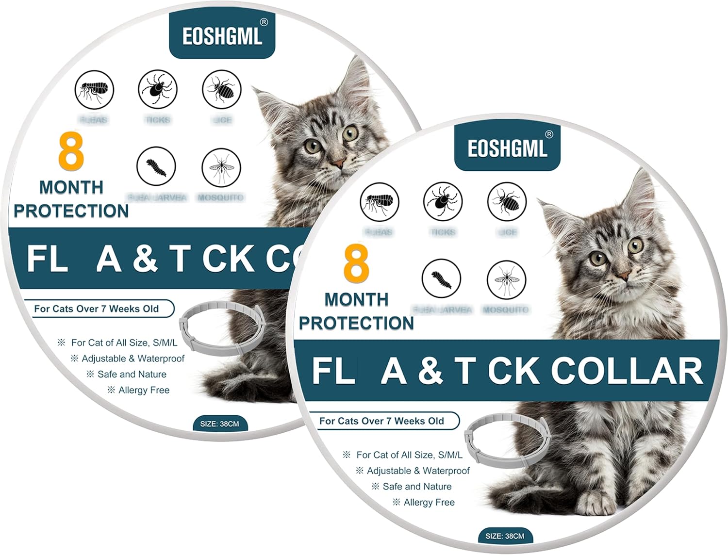 2 Pack Adjustable Collars for Cat, Prevention for 16 Months, Waterproof, 38cm for Small, Medium and Large Cats, Over 7 Weeks Old Use