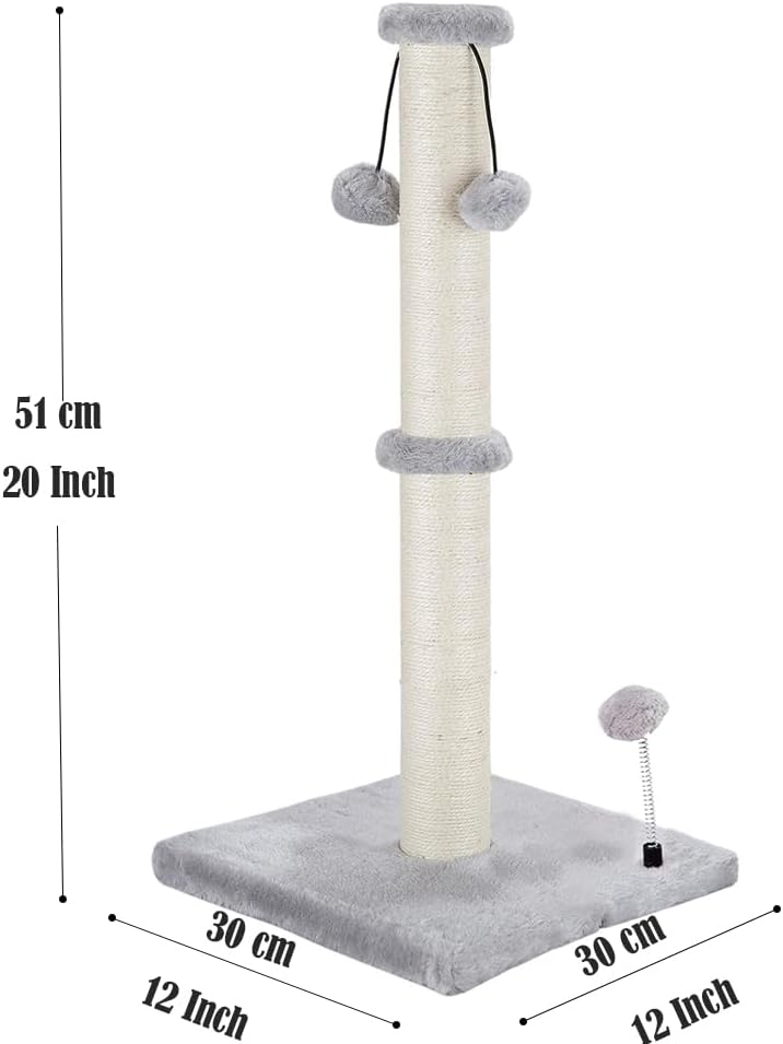 20″ Cat Scratching Post for Indoor Cats Scratch Post Cat Scratcher for Kitten with Natural Sisal Rope, 3 Ball Toys and a Stable Heavy Base