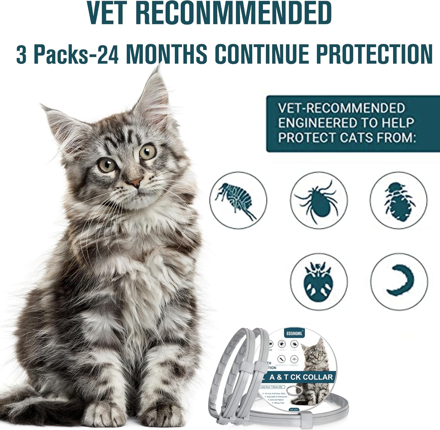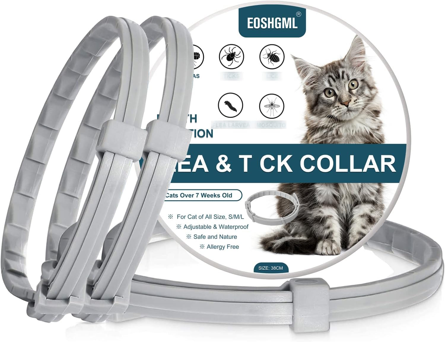 3 Pack Adjustable Collars for Cat, Prevention for 24 Months, Waterproof, 38cm for Small, Medium and Large Cats, Over 7 Weeks Old Use