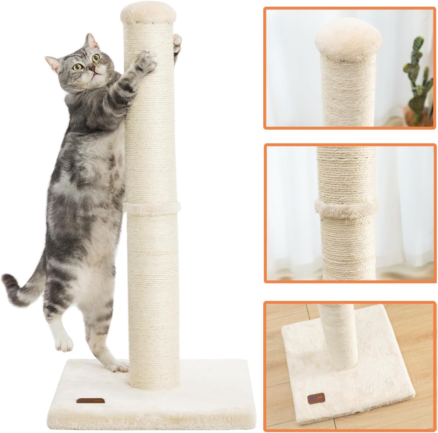 34inch Cat Scratching Post with Natural Sisal Rope 4.3Inch Large Diameter Scratcher Post Tree for Indoor Cats Beige