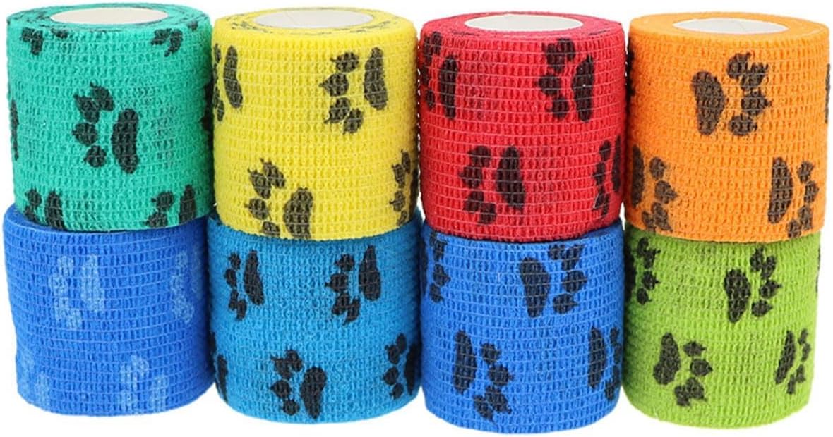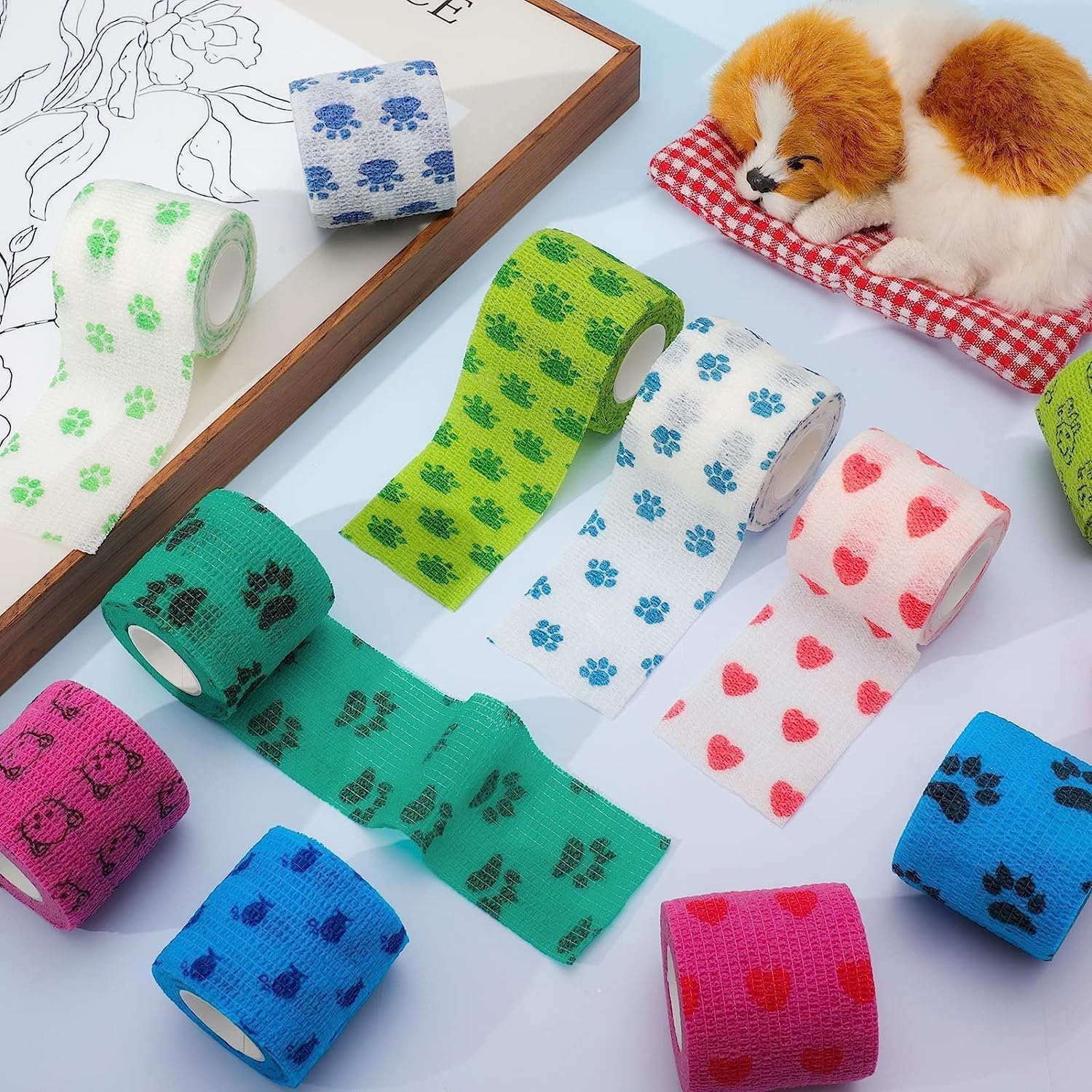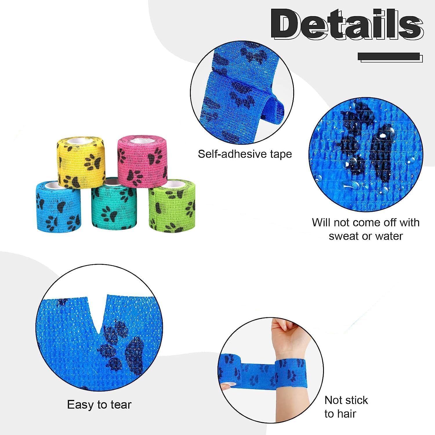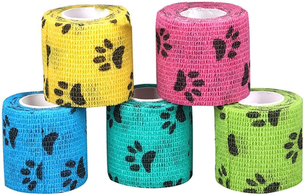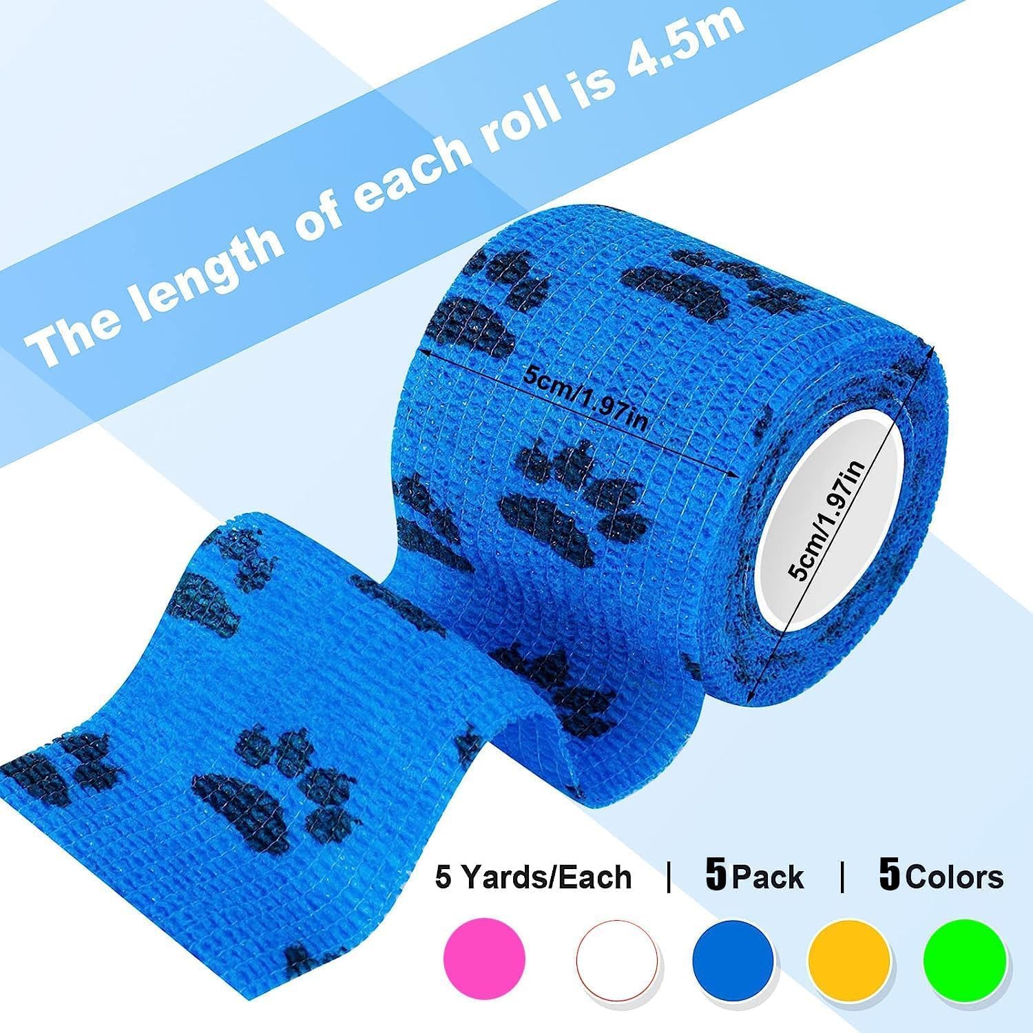 5 Pack Self Adhesive Bandage Wrap, Non-Woven Self Adherent Vet Wrap for Dogs Pet Animals, Ankle Sprains, Swelling (1.9Inch x 14.7Feet, Mix Plaw)