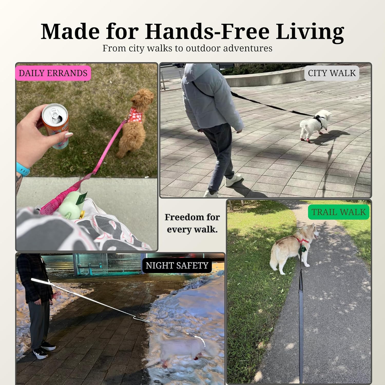 The 6-8FT Hands Free Dog Leash is designed for comfort and convenience during walks, jogging, or daily activities. This adjustable leash can be worn around the waist or as a crossbody belt, providing flexibility for pet owners. Its tangle-free design ensures that you and your dog can move freely without getting caught up. The reflective material enhances visibility during nighttime walks, making it a practical choice for urban environments.