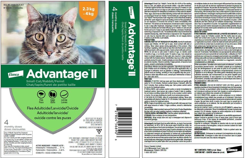 Advantage II Flea Treatment for Small Cats weighing between 2.3 kg to 4 kg (5 lbs. to 9 lbs.)-4 doses