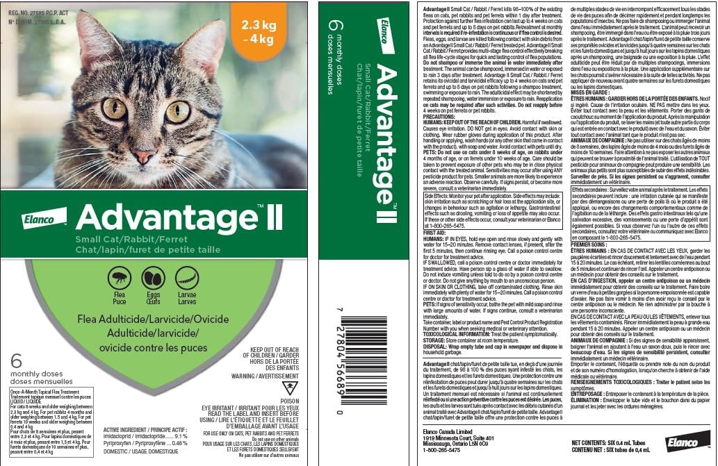 Advantage II Flea Treatment for Small Cats weighing between 2.3 kg to 4 kg (5 lbs. to 9 lbs.)-6 doses