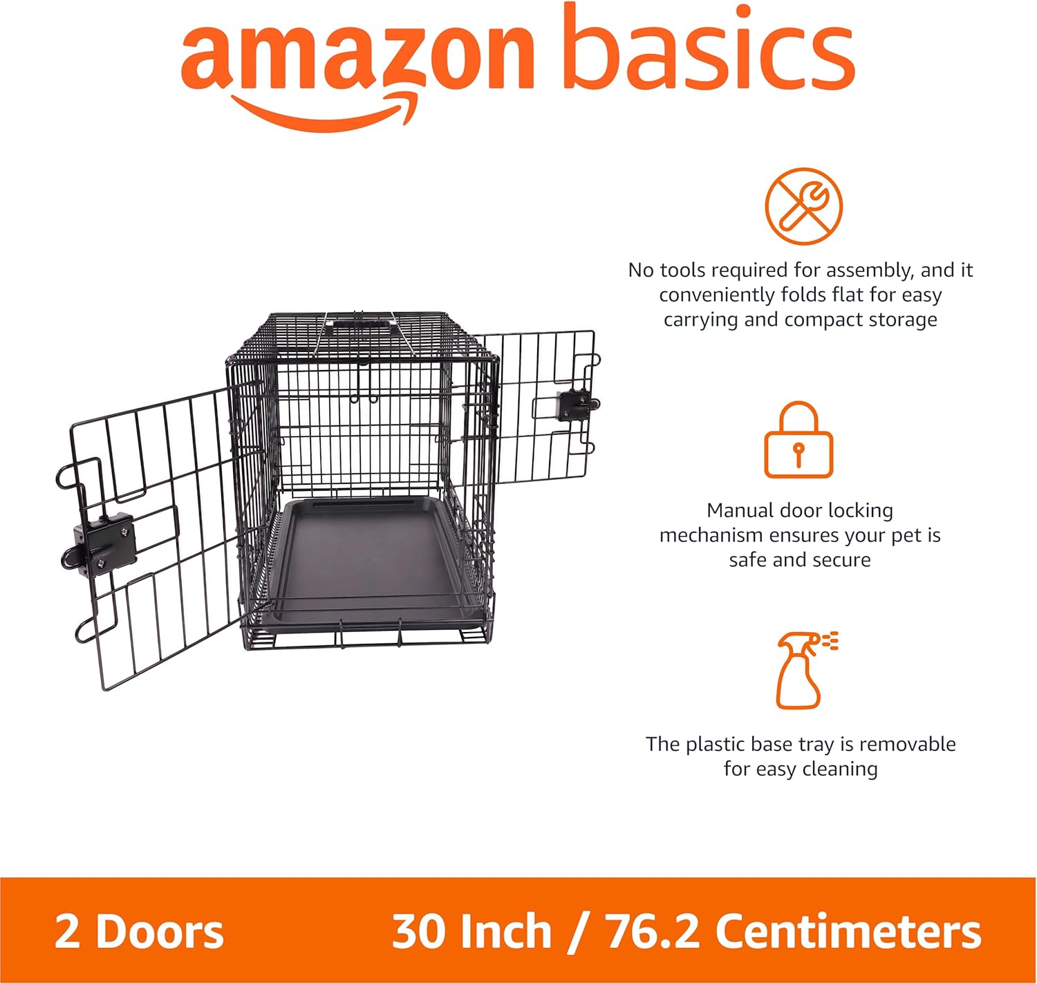 Amazon Basics Foldable Metal Wire Dog Crate with Tray, Double Door, 30 Inch, Black