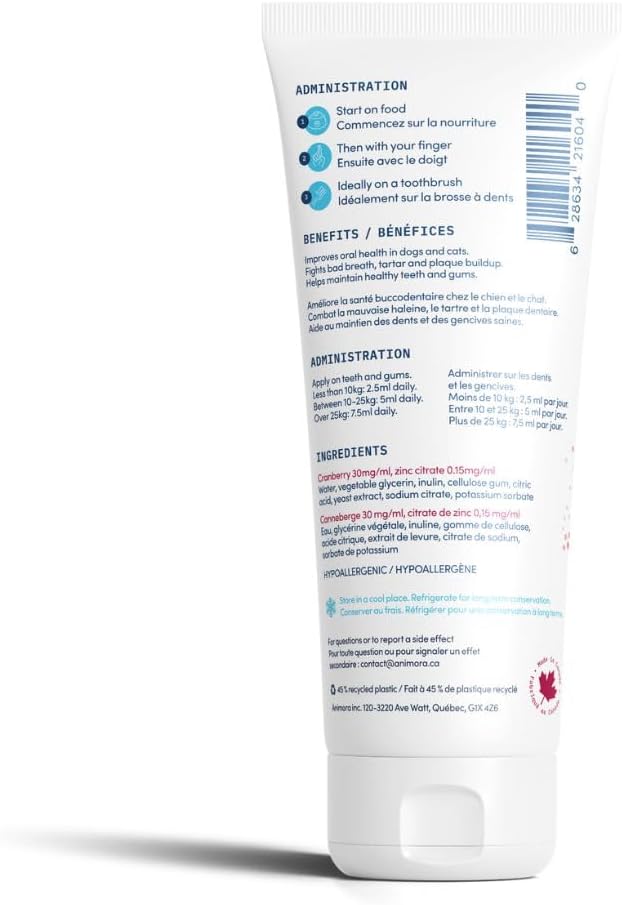 Animora Cranberry Dental Gel (200ml) – New Formula – Toothpaste for Dogs and Cats – Improves Oral Health, Prevents Bad Breath and Dental Plaque Buildup