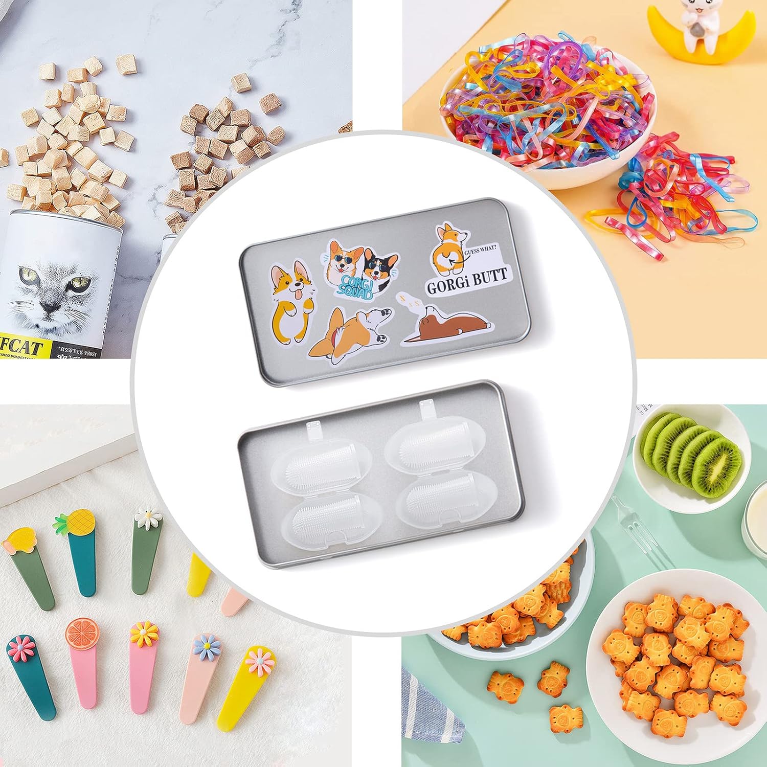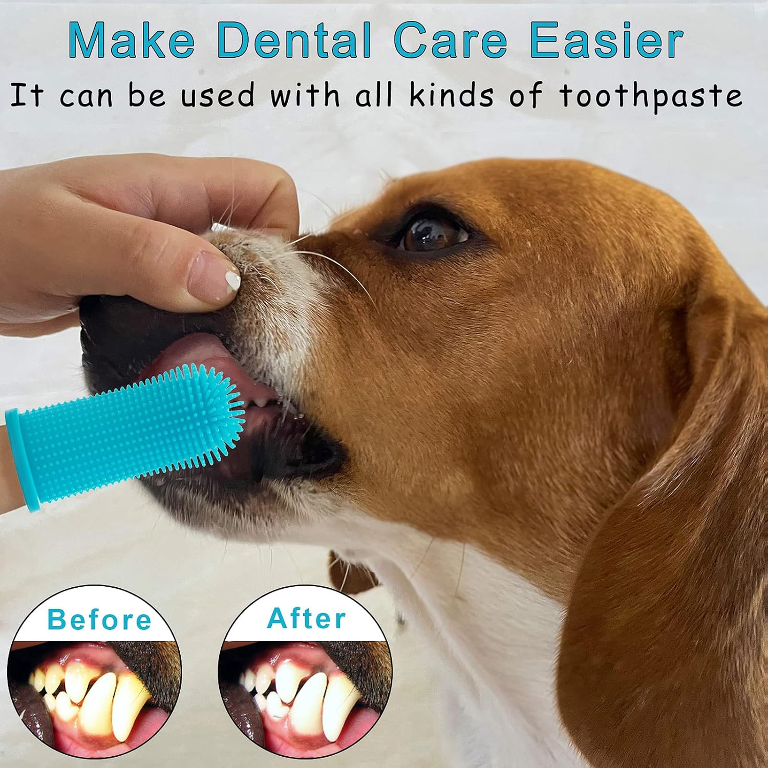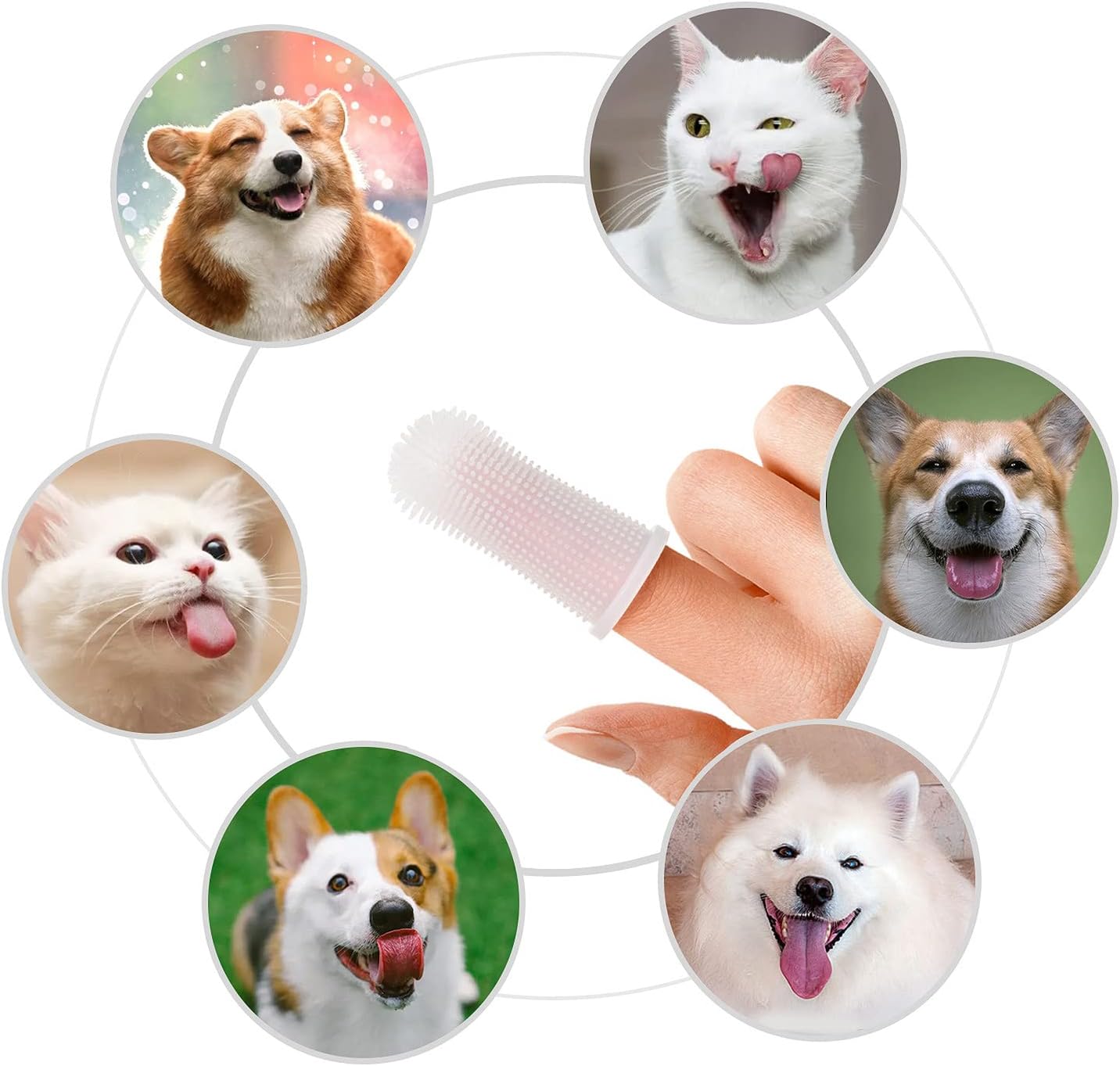 Aujzoo Dog Toothbrush Set (4 Packs), 360º Pets Teeth Cleaning Toothbrush for Dogs Cats Dental Care, Silicone Finger Teeth Brush