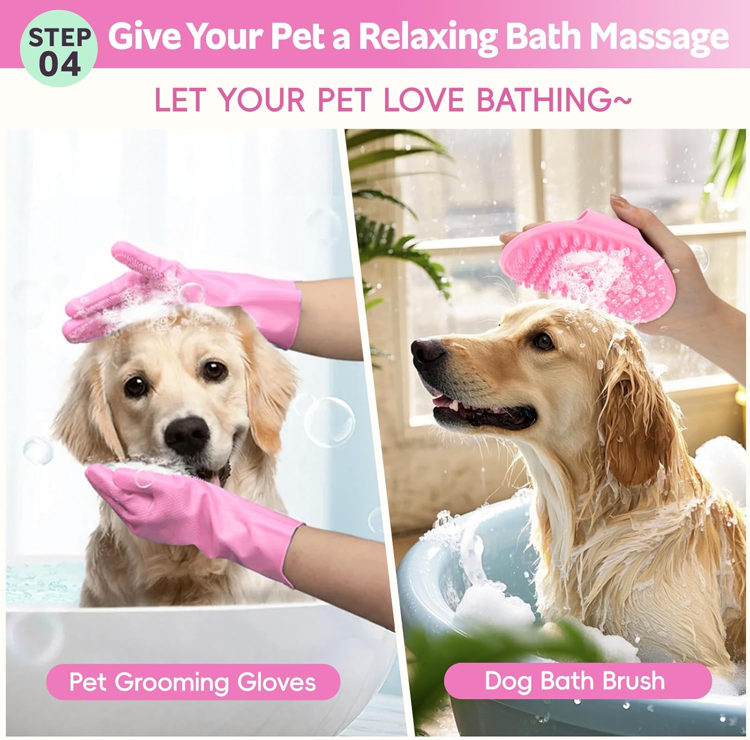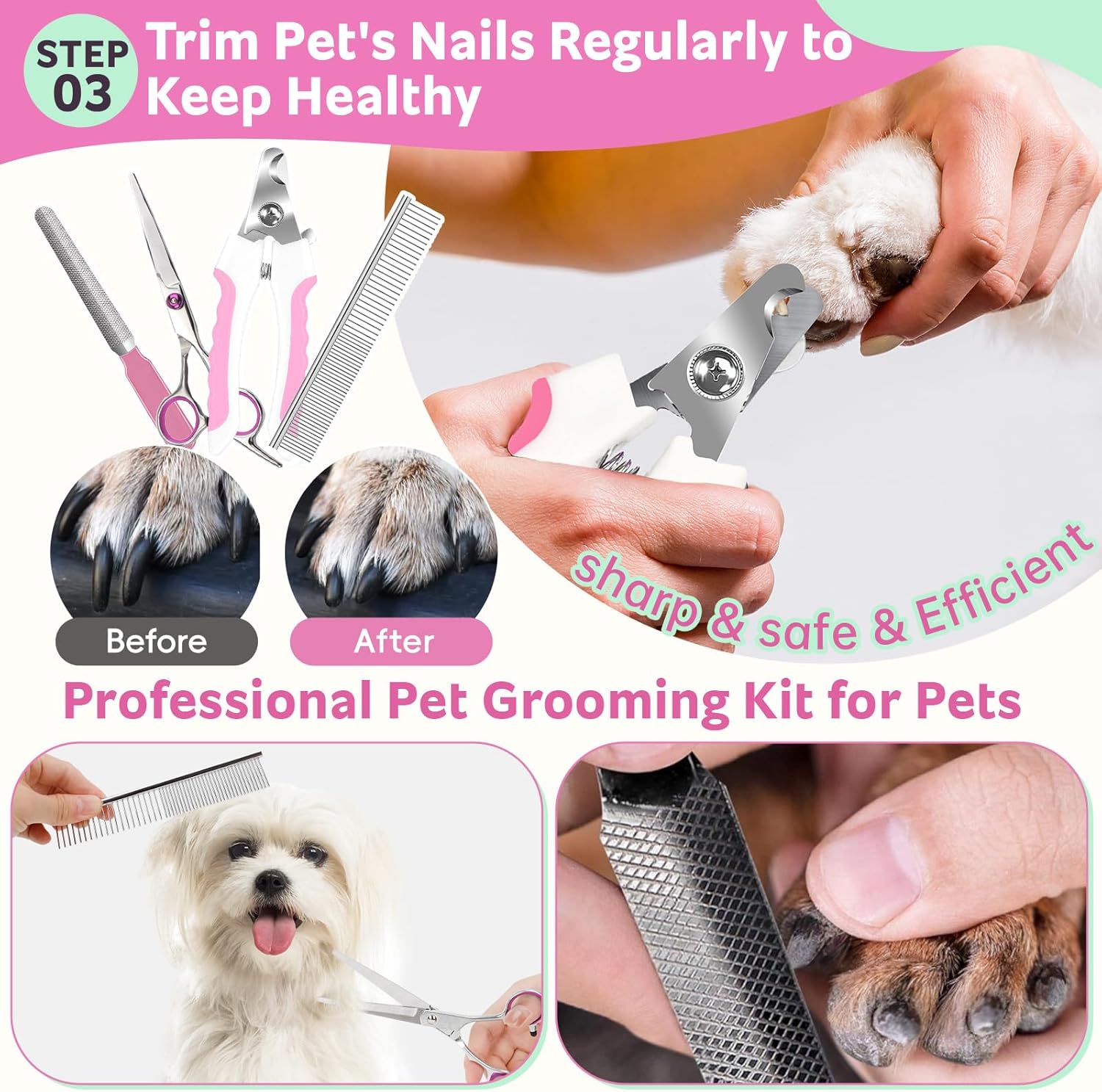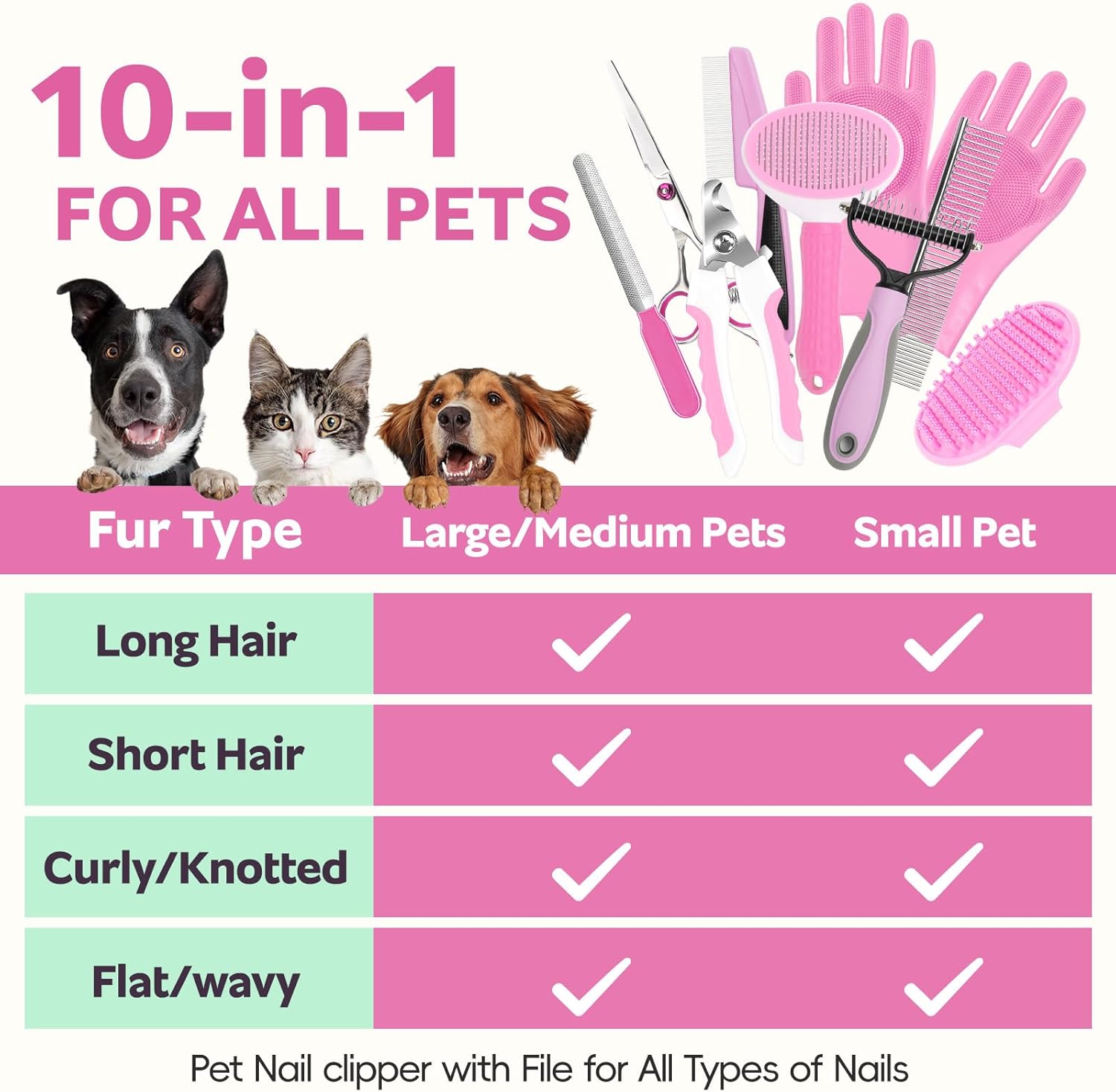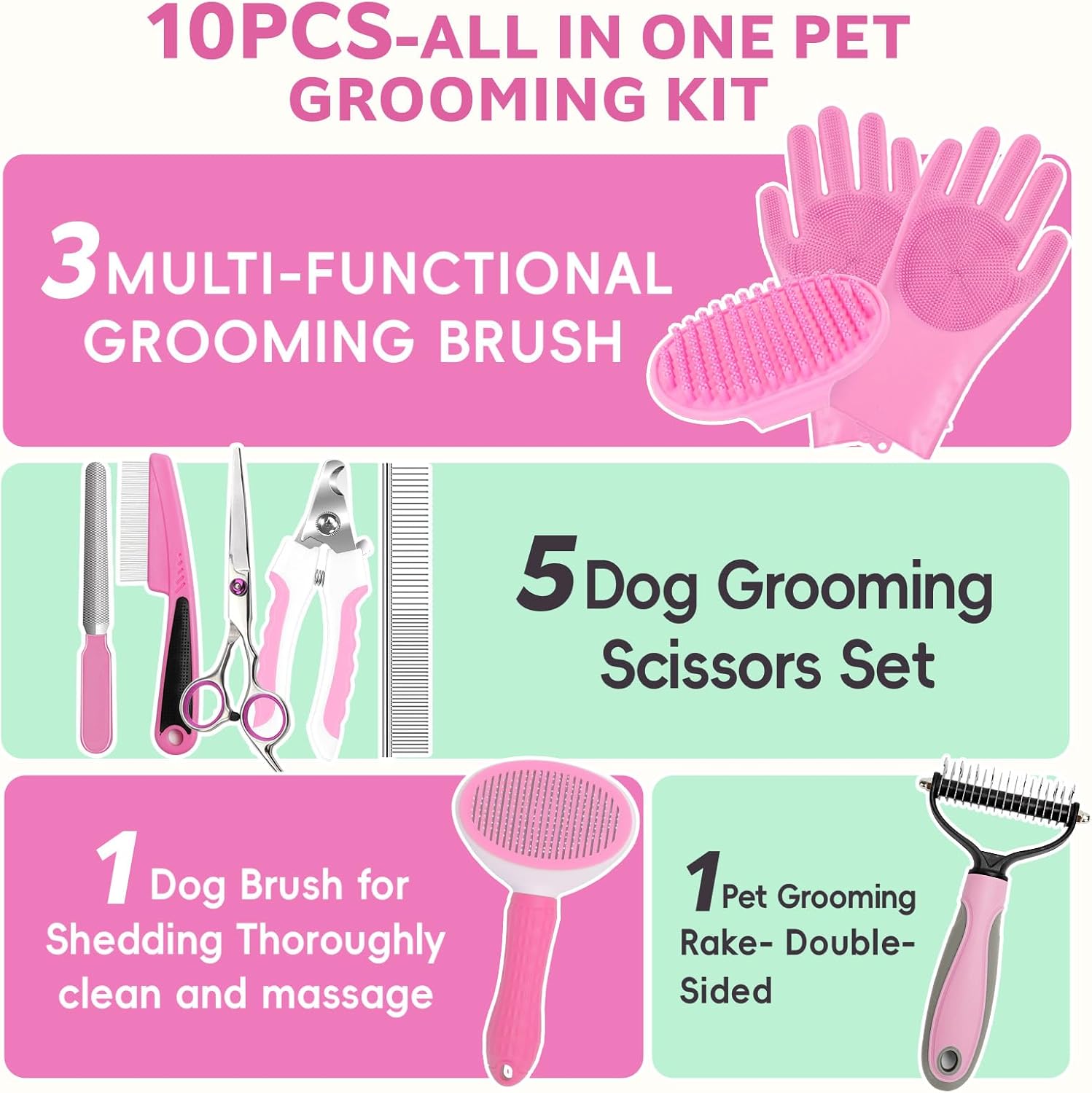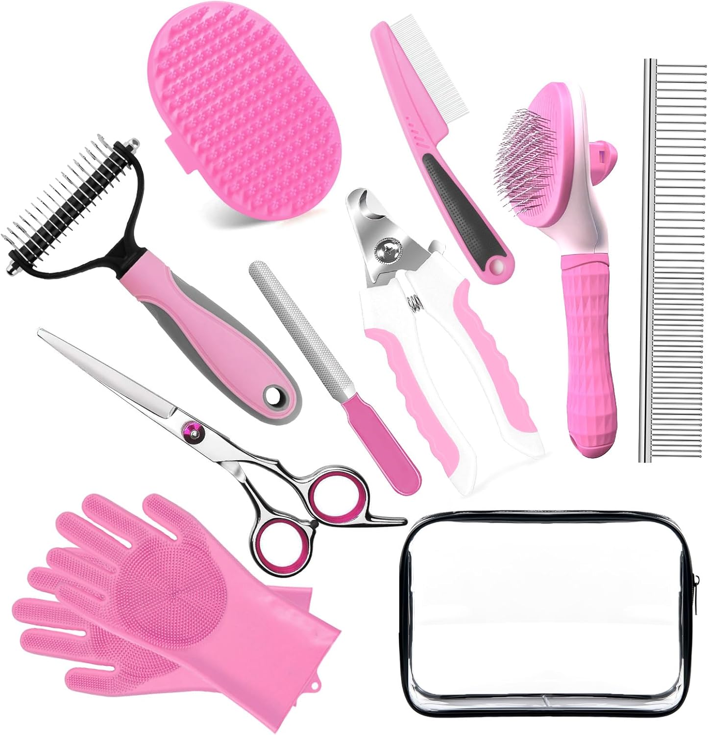 Bath Grooming Kit for Pets, 10pcs Dog Brush for Shedding with Dog Nail Clipper and Trimmer, Dog and Cat Grooming Supplies, Dematting Comb for Dogs, Pet Bath Supplies, Dog Grooming Brush for Dog and Cats(Pink 10pcs)