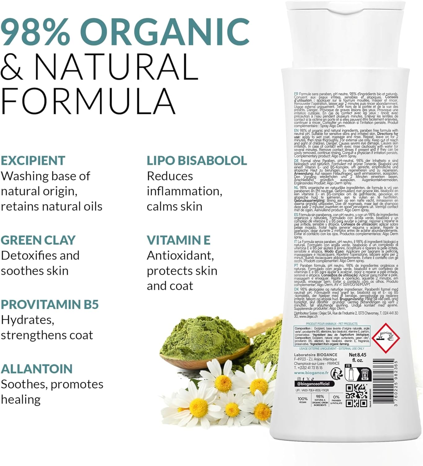 Biogance Dog Shampoo for Sensitive Skin (250ml), Cleanses, Heals Dry, Itchy Skin, Formulated with Green Clay, Bisabolol, Paraben Free