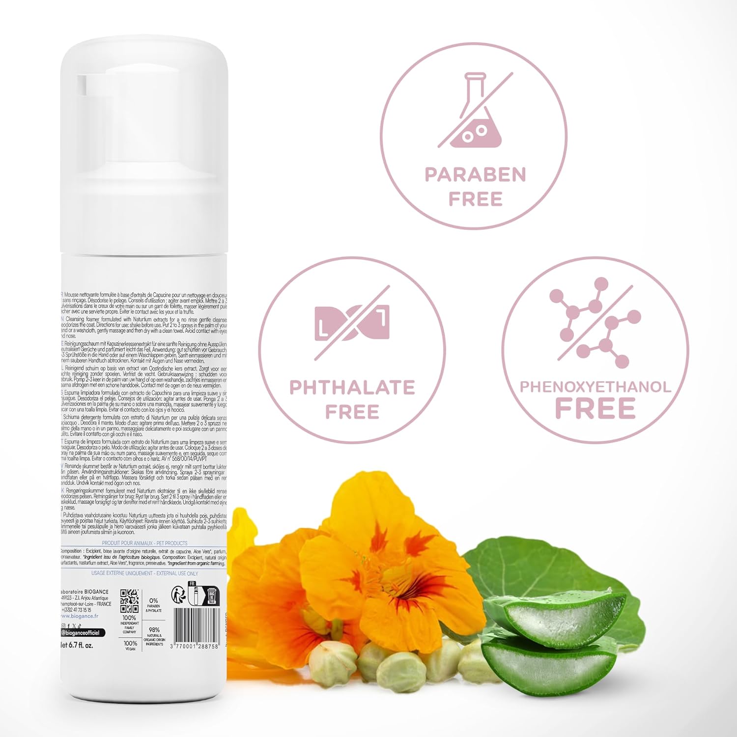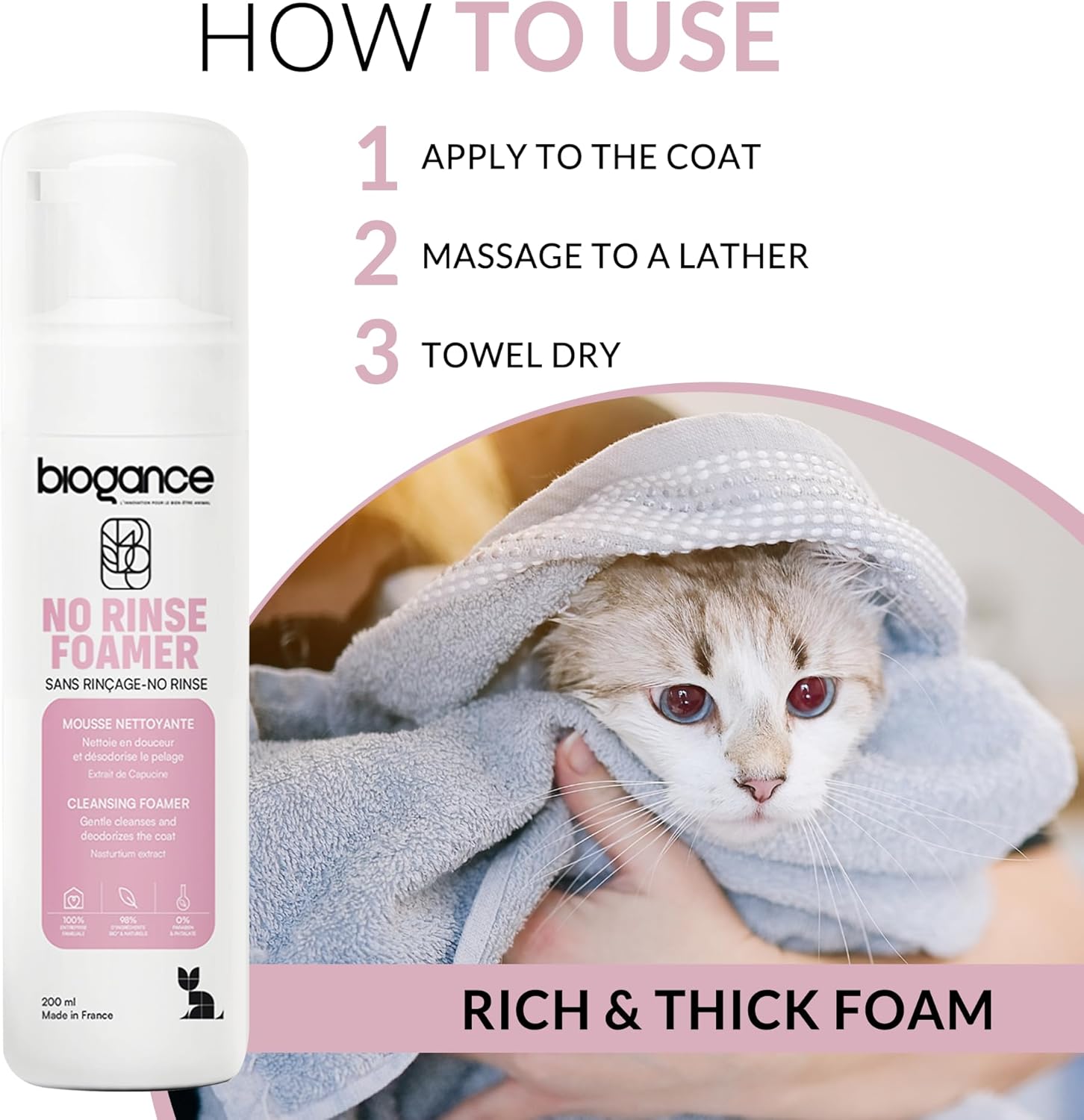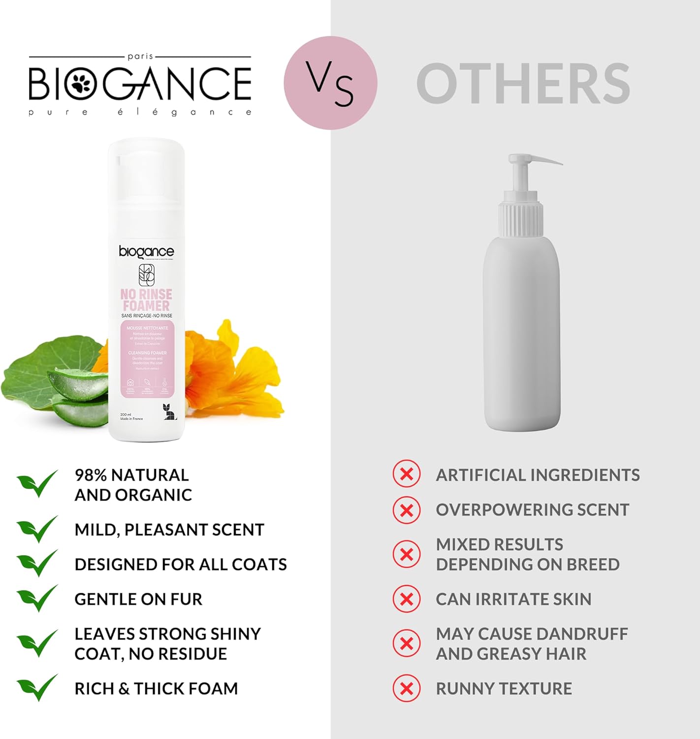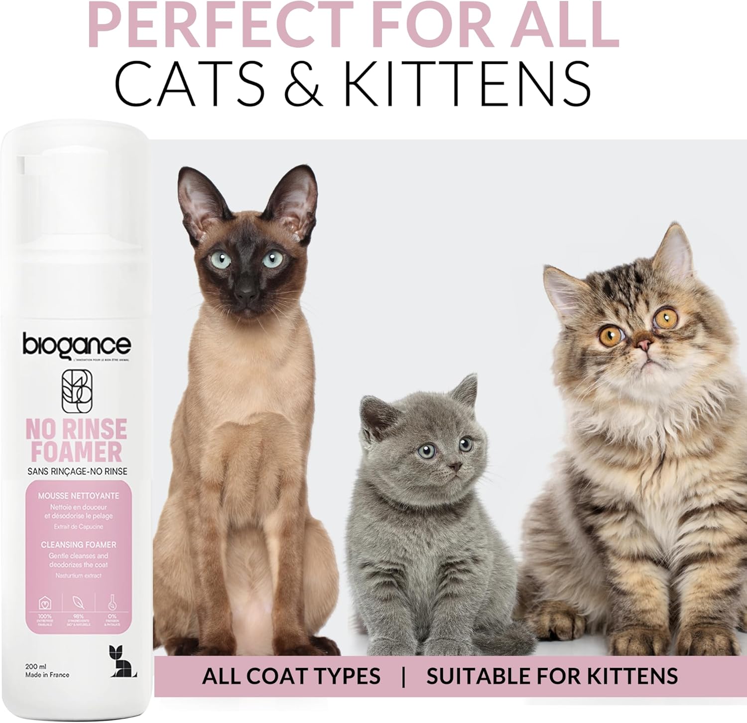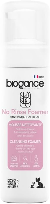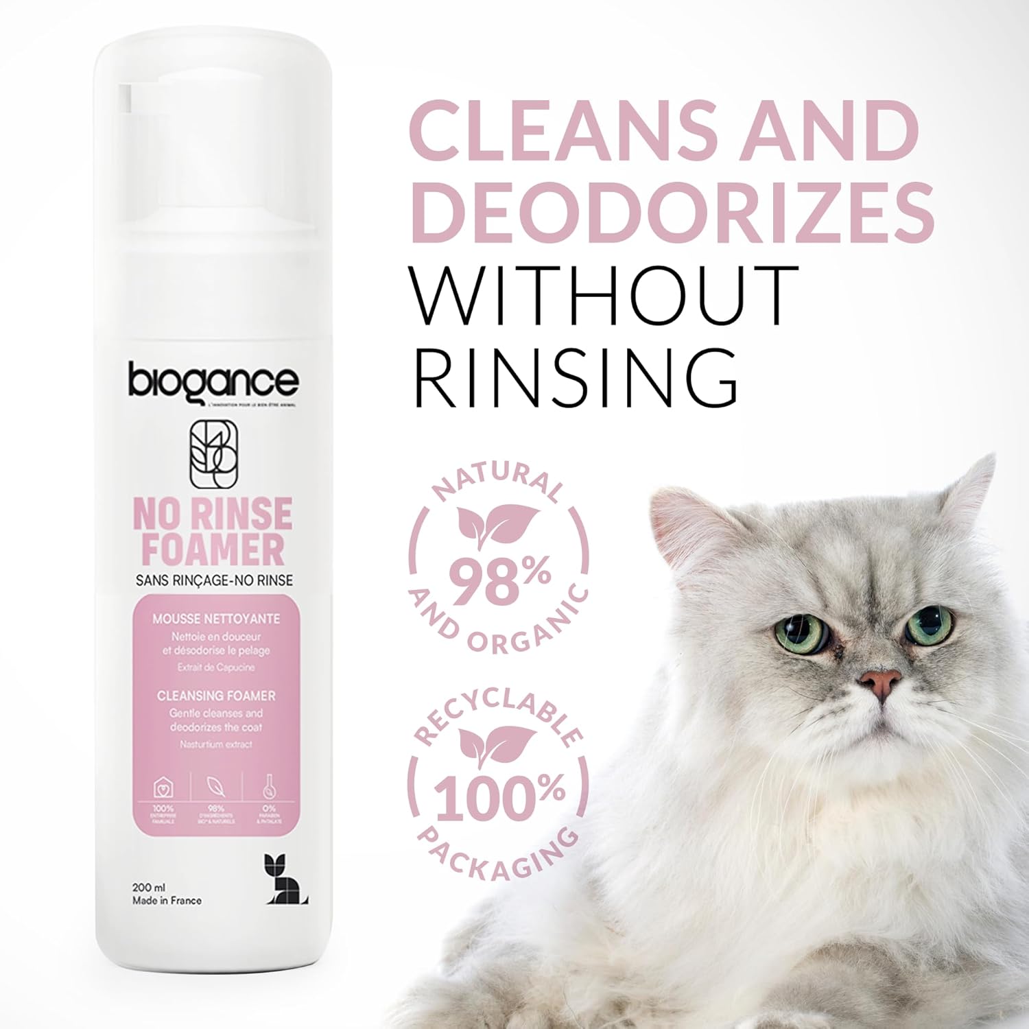 Biogance Waterless Cat Shampoo (200ml) – Cat Dry Shampoo Cleanses, Refreshes & Deodorizes – No Rinse – Infused with Aloe Vera & Nasturtium extracts – Made in France