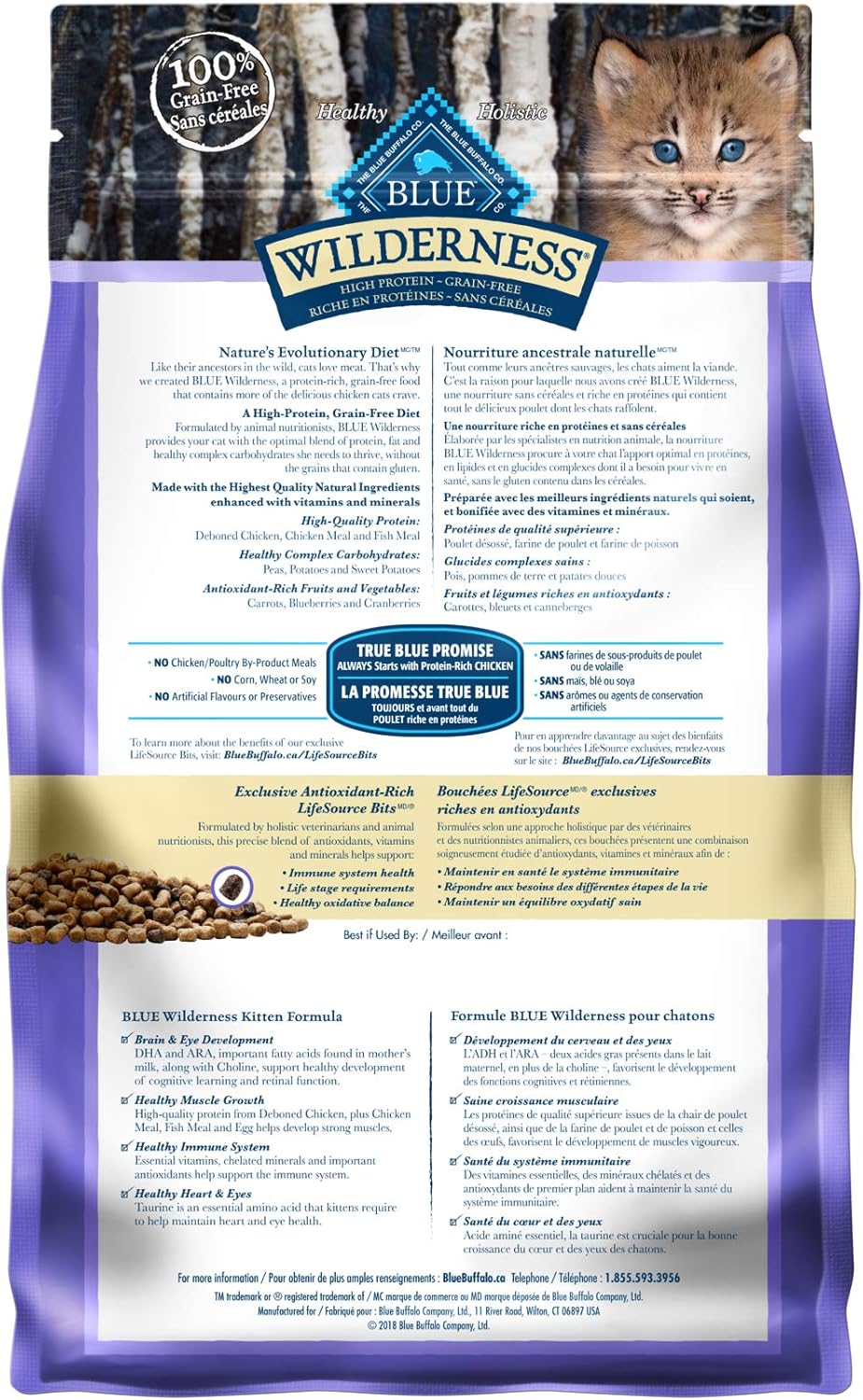 Blue Buffalo Wilderness High Protein Grain Free, Natural Kitten Dry Cat Food, Chicken 2.2kg Bag – Medium Bag, Kibble
