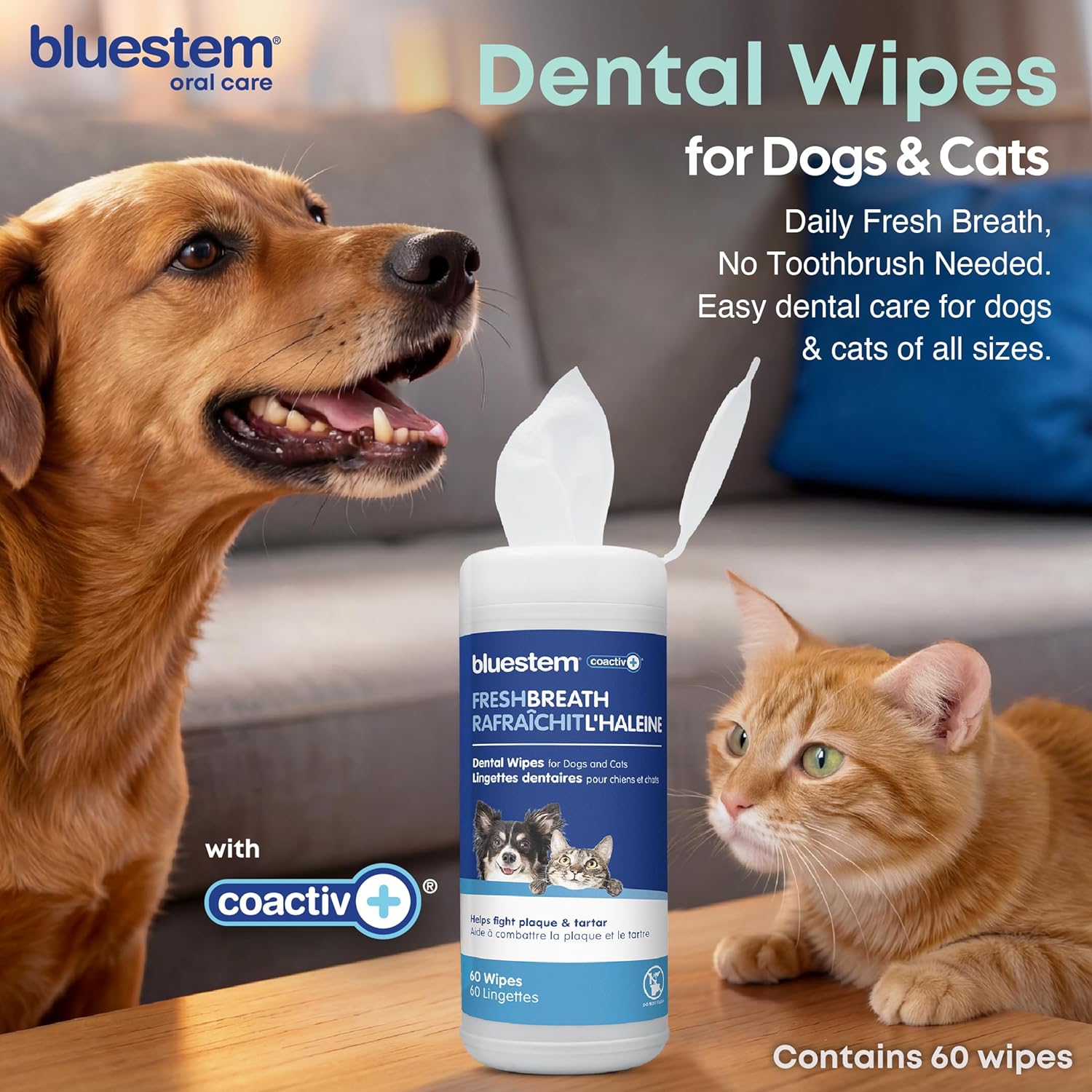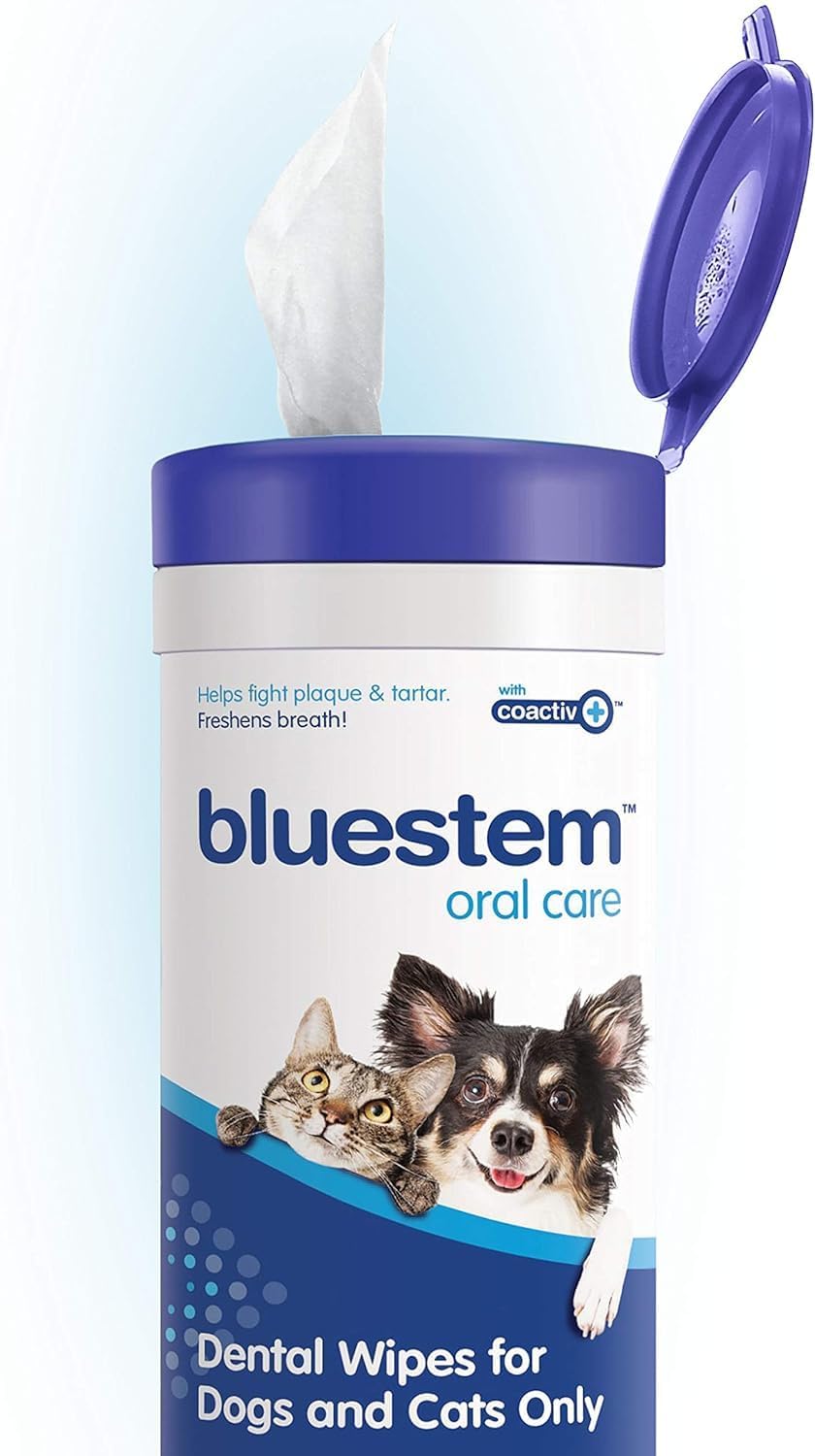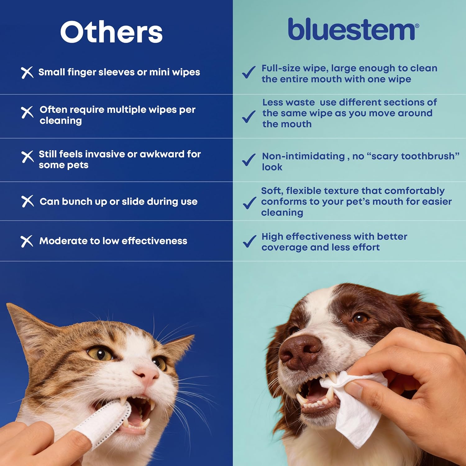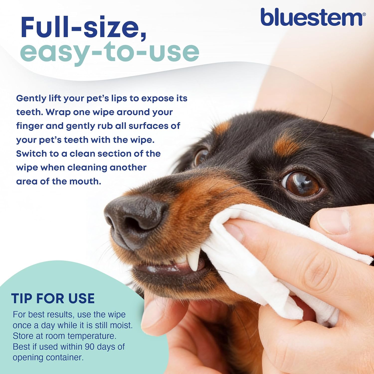 bluestem Dental Wipes for Dogs & Cats – No Brushing Finger Wipes for Daily Teeth Cleaning – Pet Oral Care to Freshen Breath & Help Reduce Plaque – Gentle & Effective Oral Hygiene Solution (50 Count)