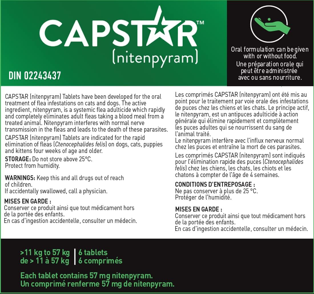 Capstar Oral Flea Treatment for Large Dogs Weighing 11 to 57 kg – 6 Pack