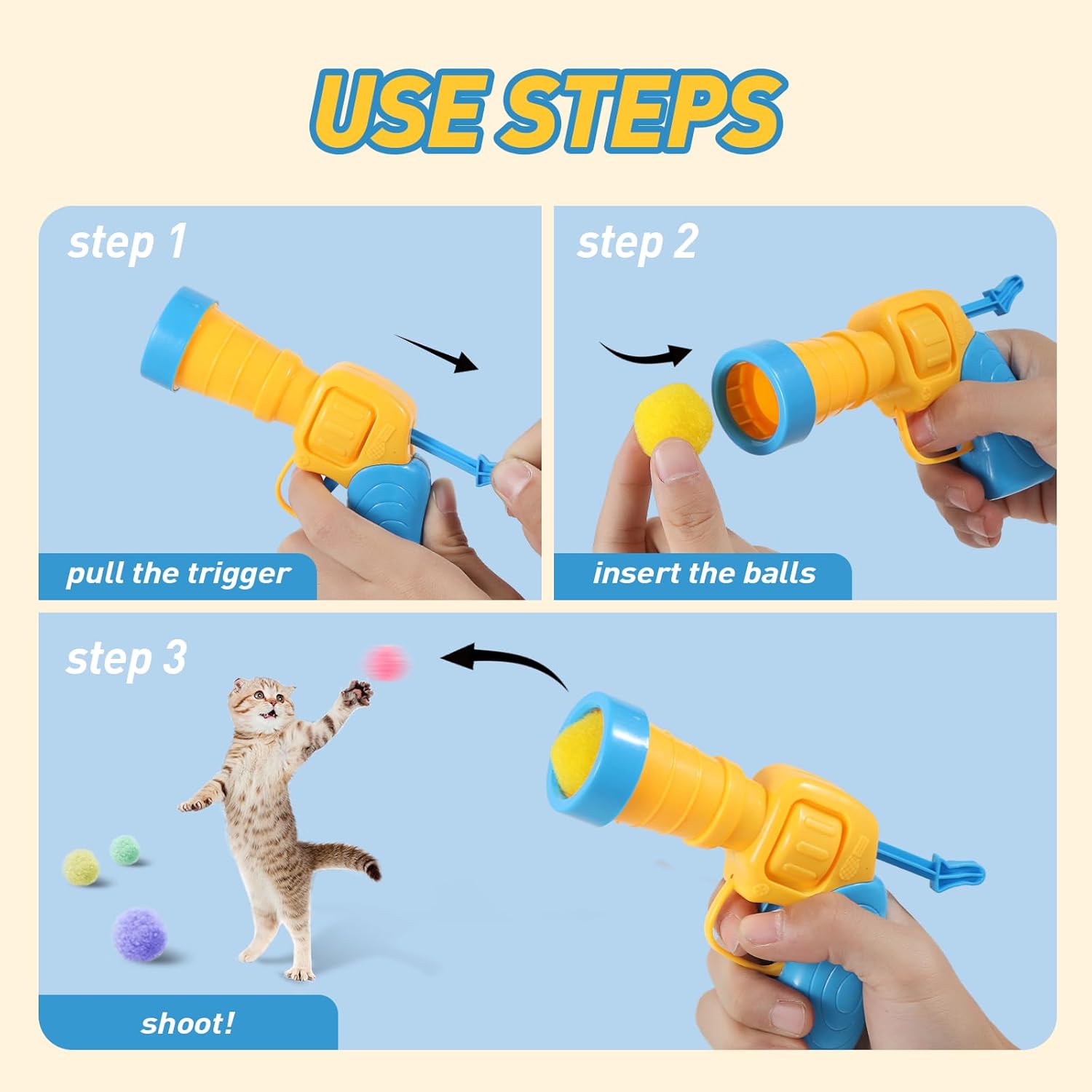 Cat Ball Toy Launcher Gun 37pcs Cat Toys for Indoor Cats Cat Toys for Bored Indoor Adult Cats Interactive Cat Toy Kitten Toys Cat Balls Fetch Toy Cute Cat Toys Cat Ball Launcher