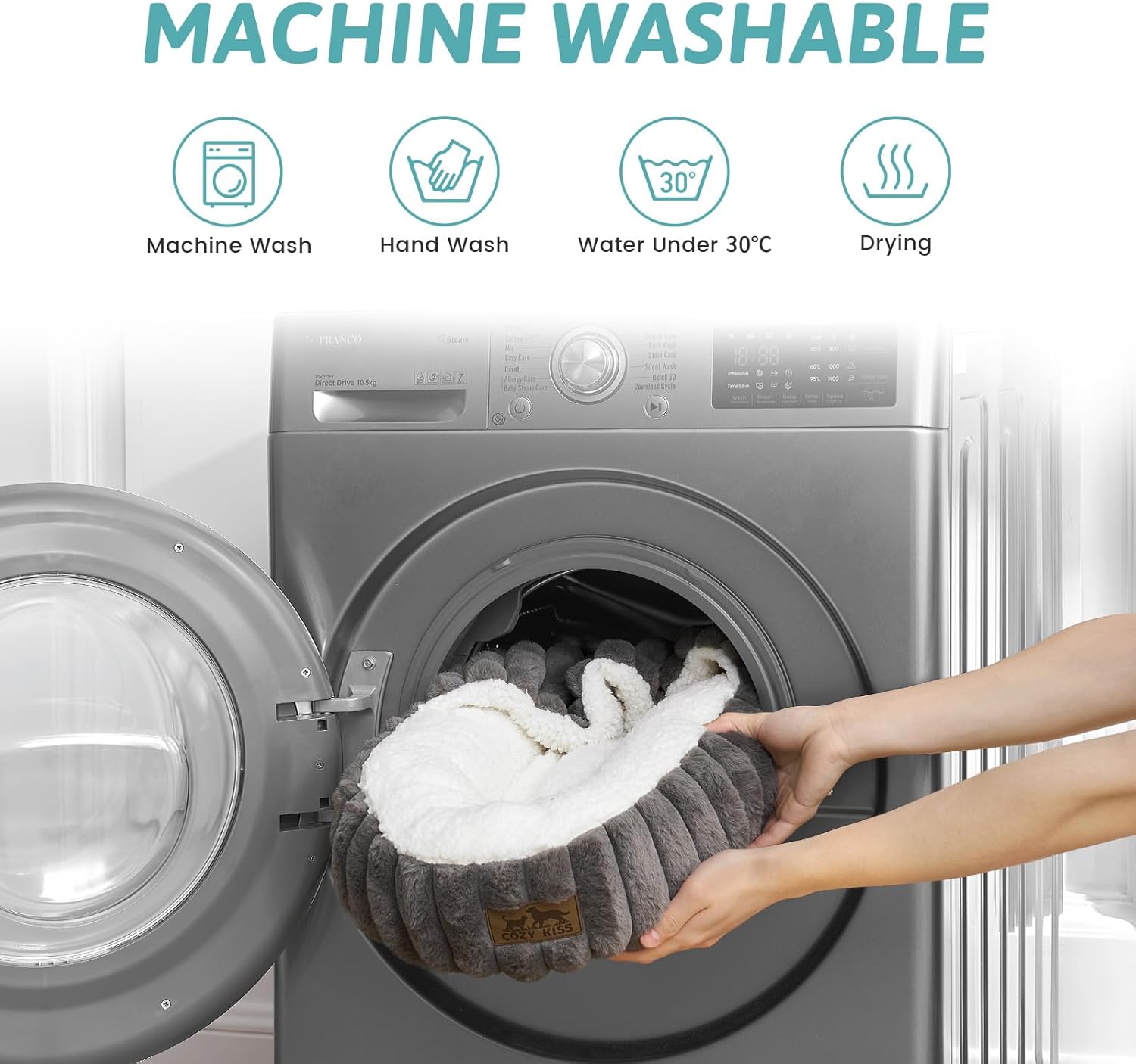 The Cat Bed with Hooded Blanket is designed for comfort and security, making it an ideal choice for your feline friend or small dog. This round fluffy bed features a cozy donut shape that allows pets to curl up and feel safe. Made from soft faux fur, it provides a warm and inviting space. The anti-slip bottom ensures stability on various surfaces, while the machine washable fabric makes cleaning easy.