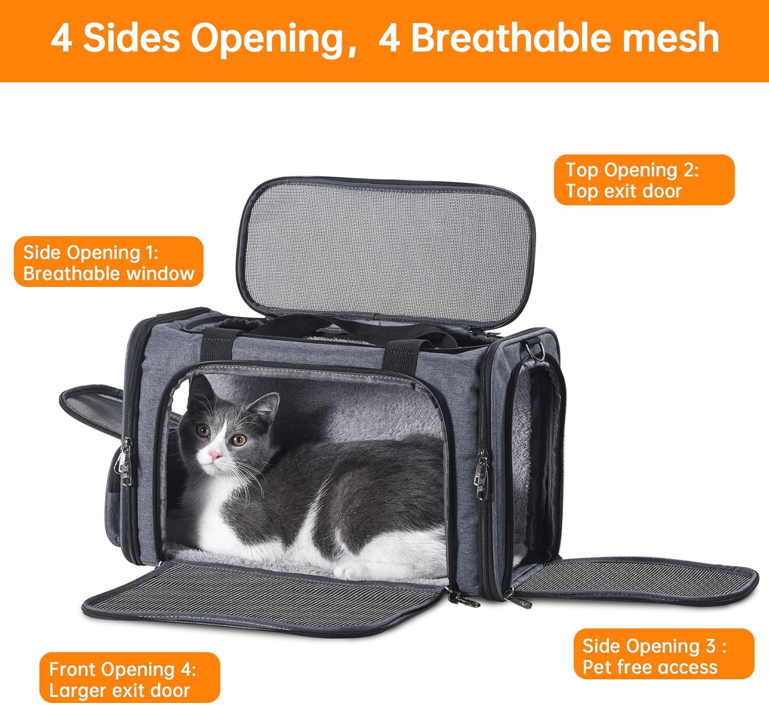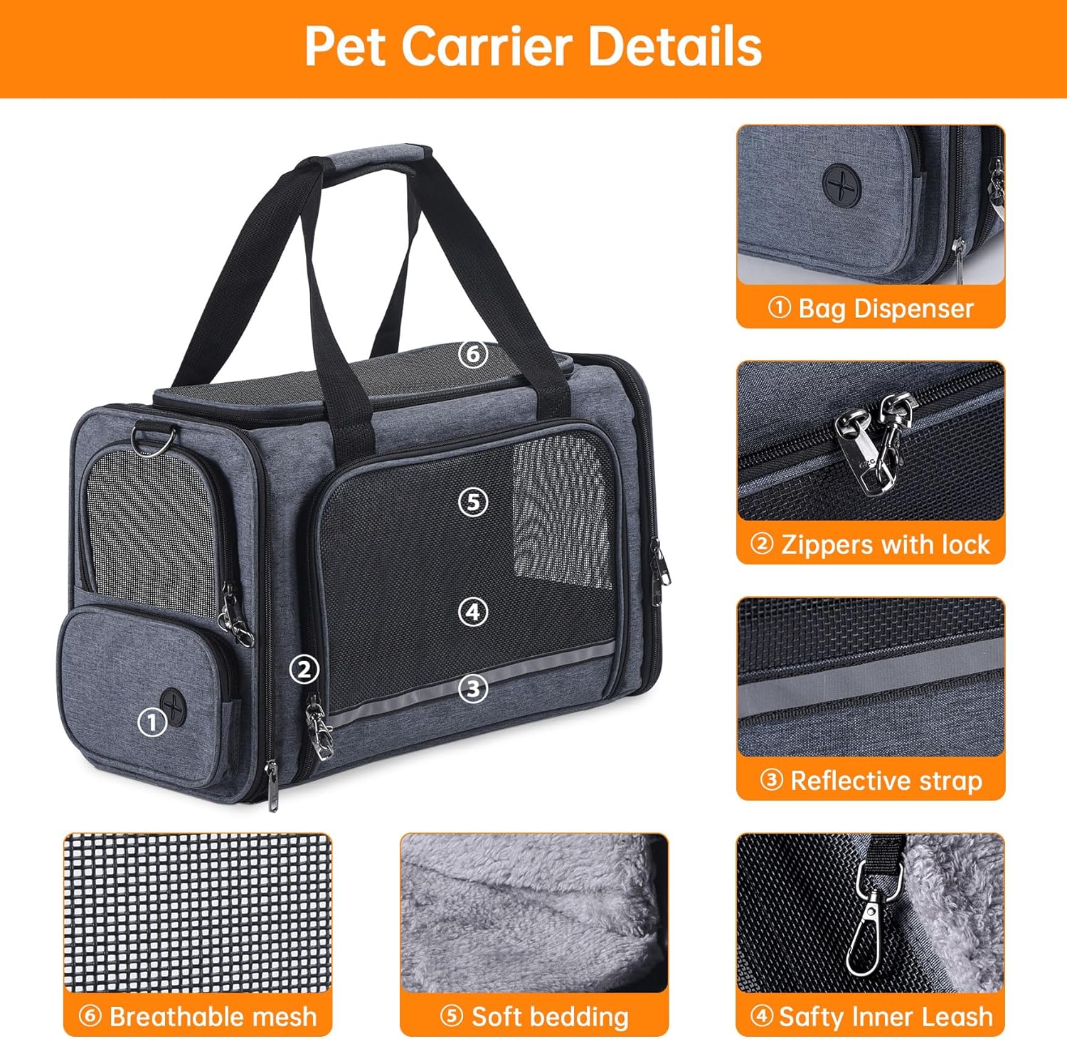Cat Carrier Pet Travel Carrier by Airplane Approved Under seat, TSA Airline Approved Soft-Sided Carrier Bag for cat,Dogs,17.5 x 8.5 x 11 inches,Grey