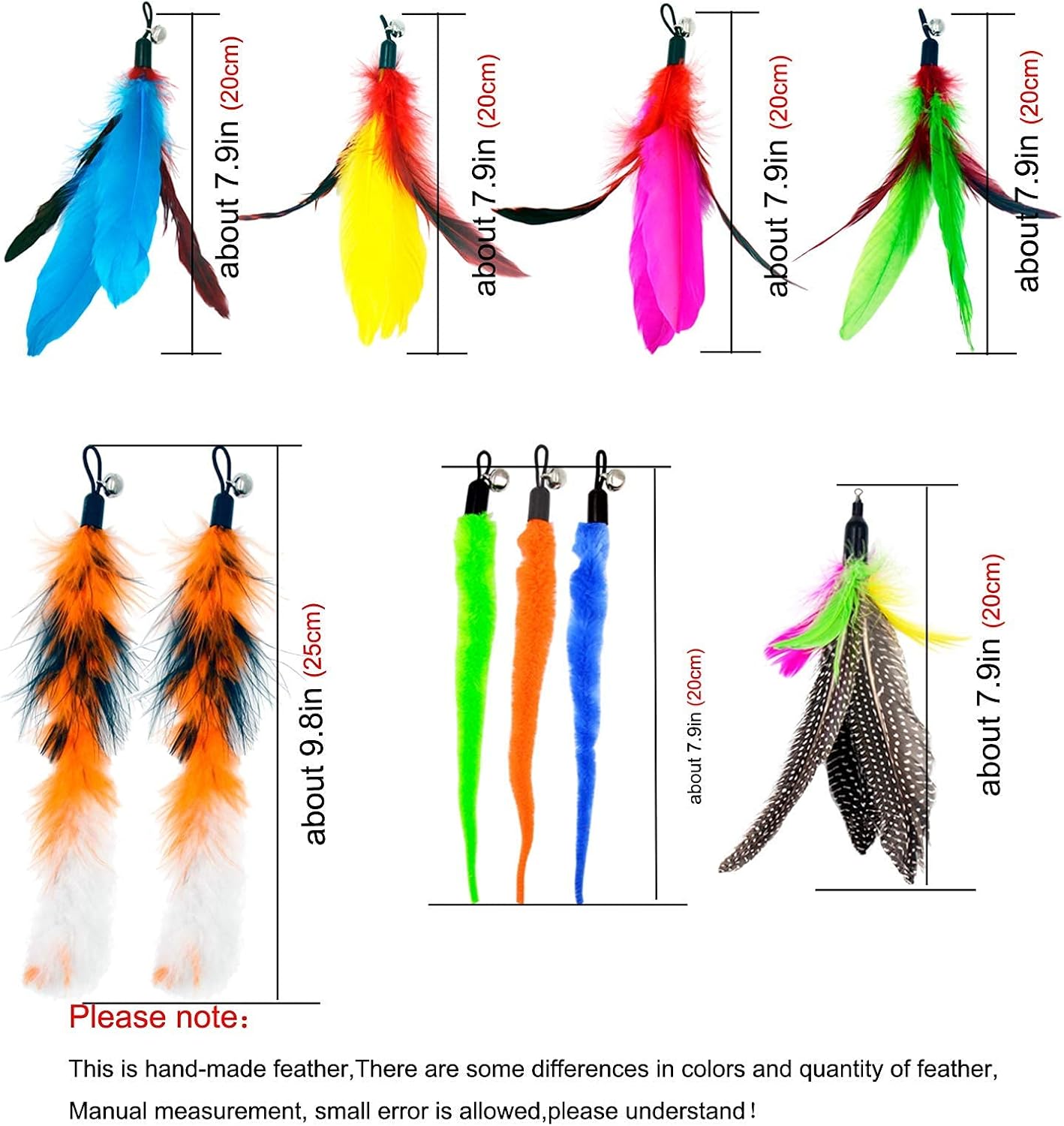 Cat Feather Toys Refills Cat Wand Replacement Feathers, 10 PCS Feather Cat Toy Refills, Cat Wand Attachments Feathers Worms for Cat Toys