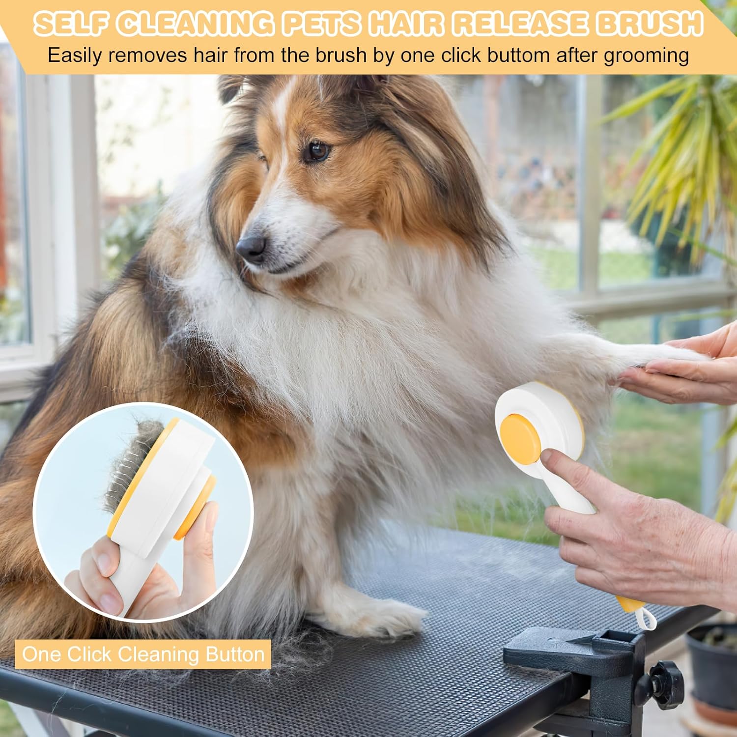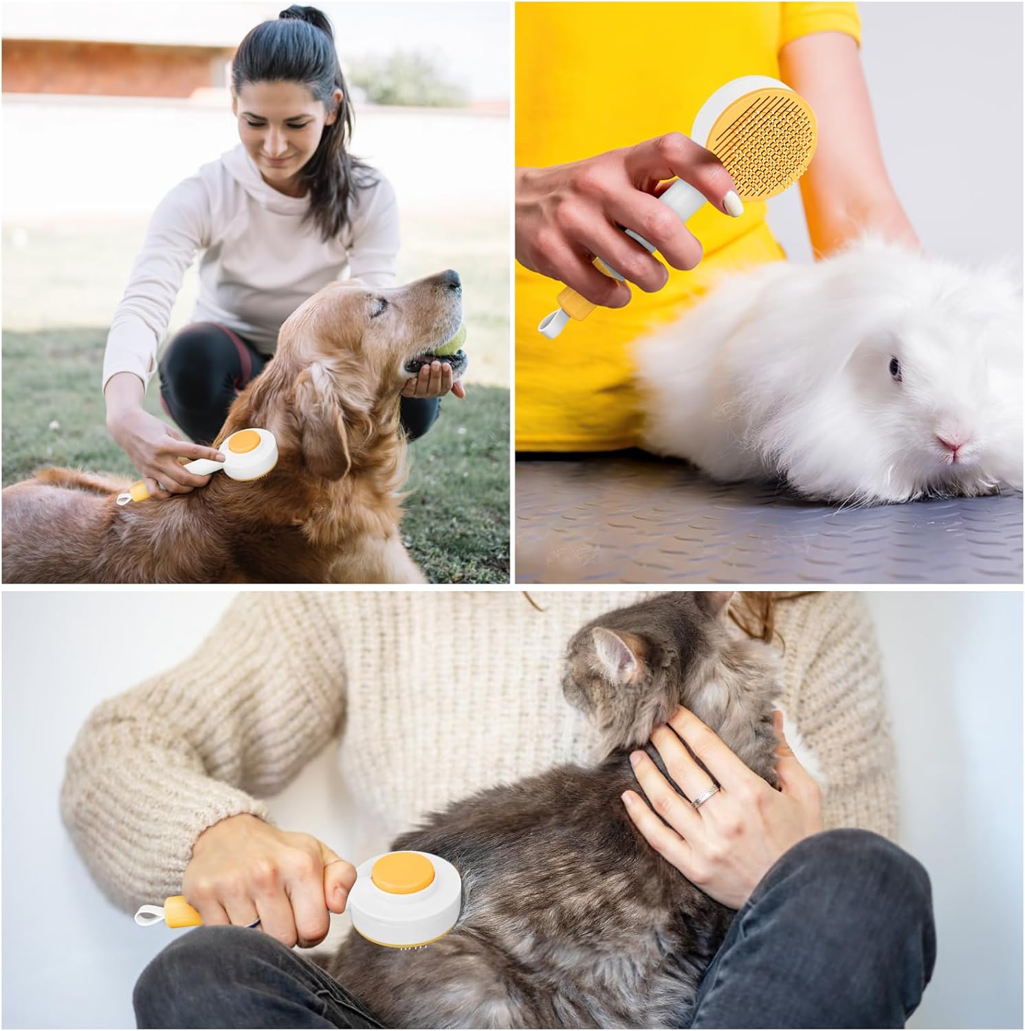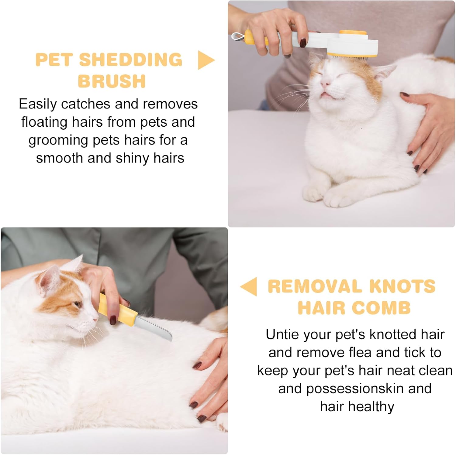 Cat Hair Brush for Deshedding, 3 in 1 Pet Hair Removal Comb Grooming Kit with Nail Clippers & Hair Knots Removal Comb, Pet Self Cleaning Slicker Brush for Long Short Haired Cats Dogs Kitten (Yellow)