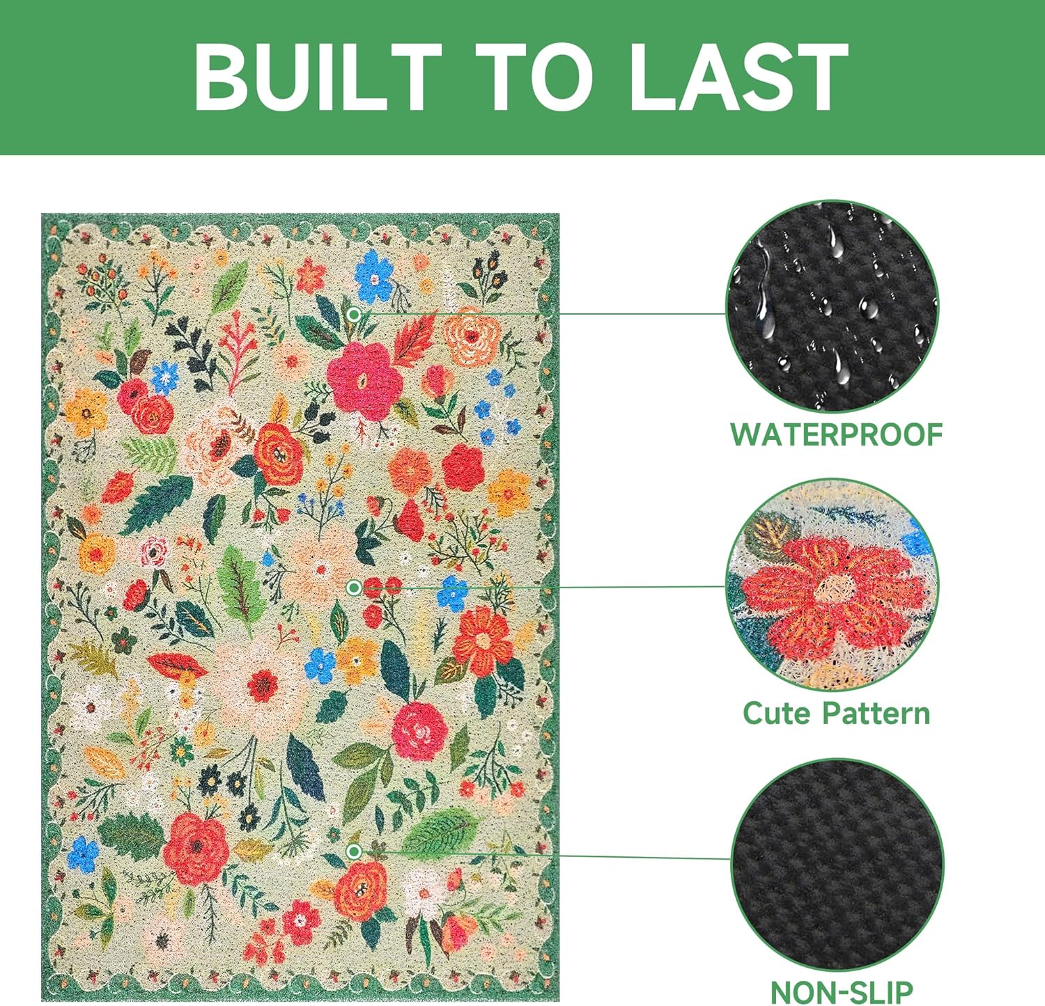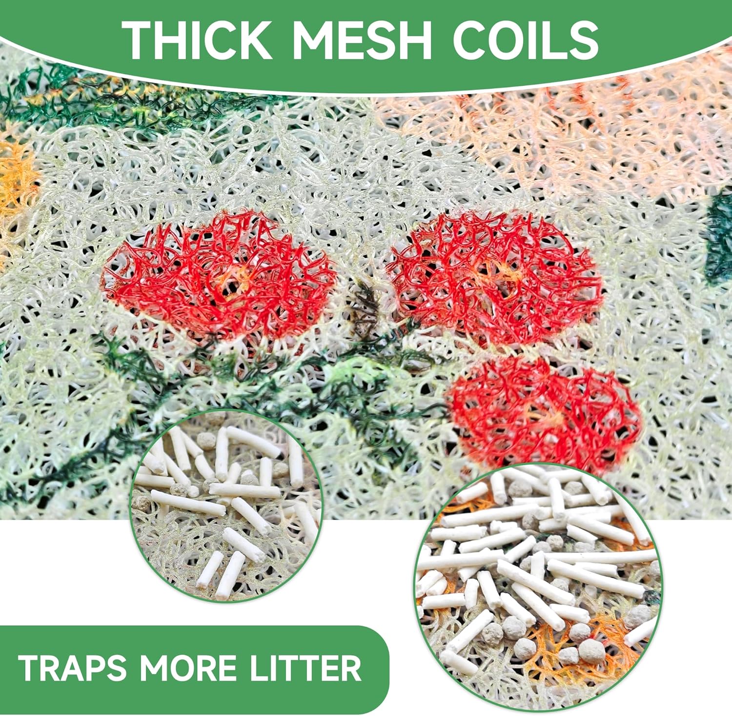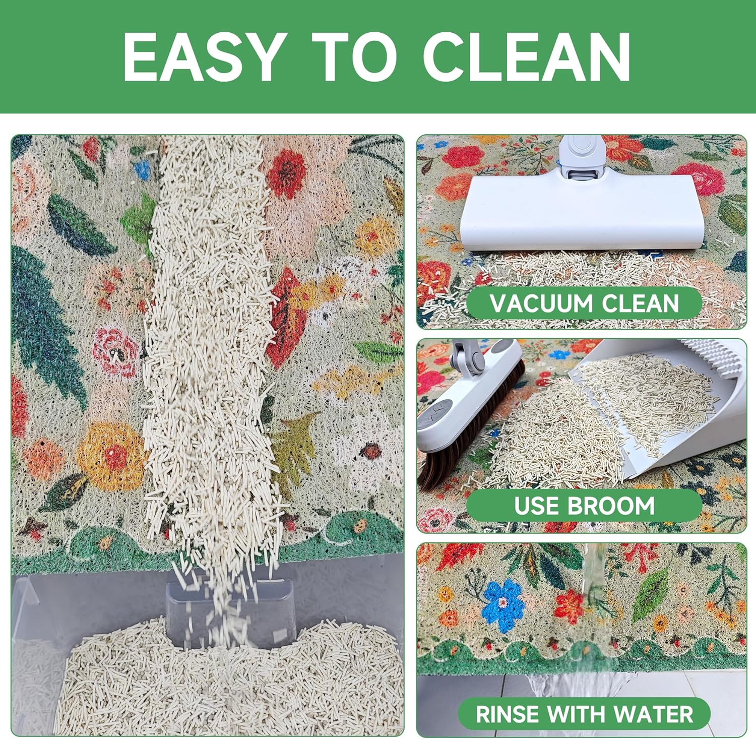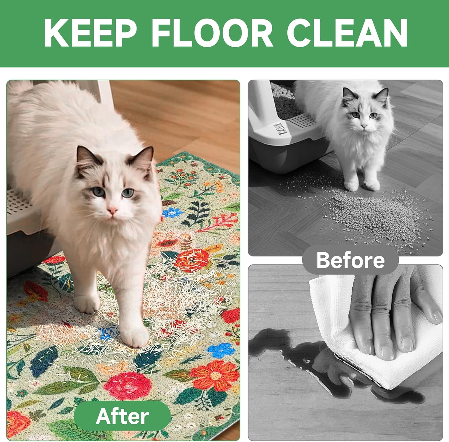 Cat Litter Mat, 60 x 40cm Litter Box mat, Upgrade Non-Slip Kitty Litter mat, Traps 100% Litter, Soft on Kitty Paws, Easy Clean for Scatter Control, Bohe cat Food mat, Urine Waterproof