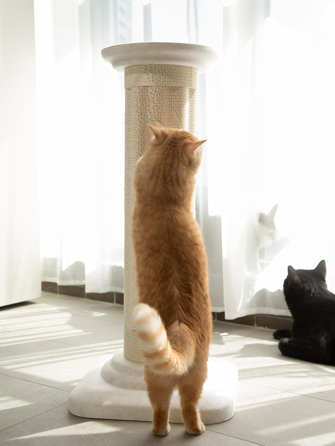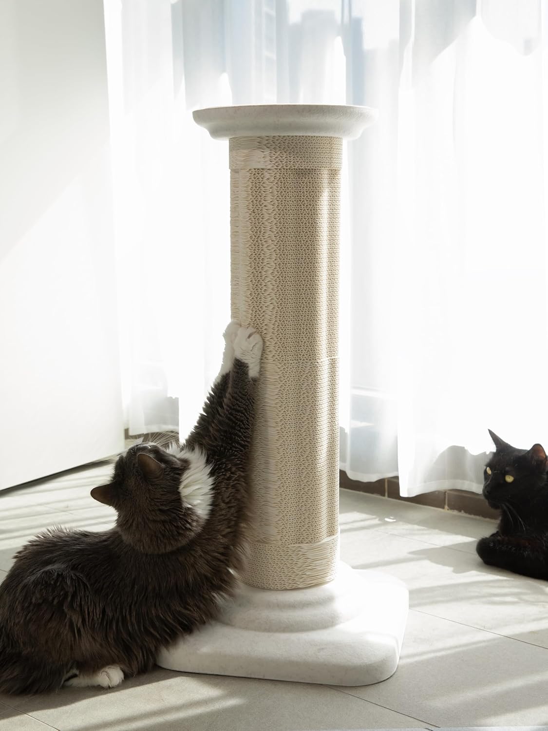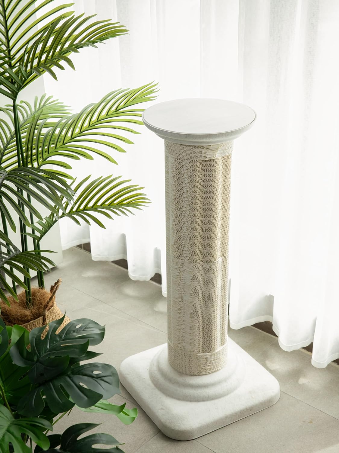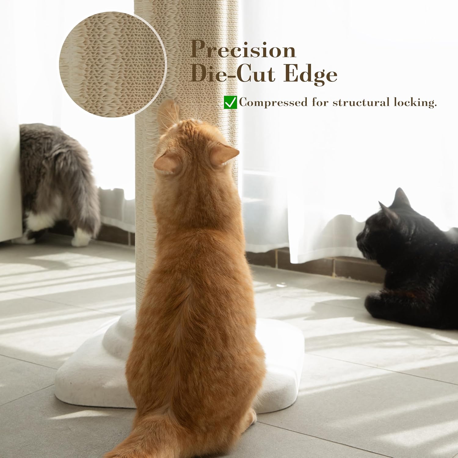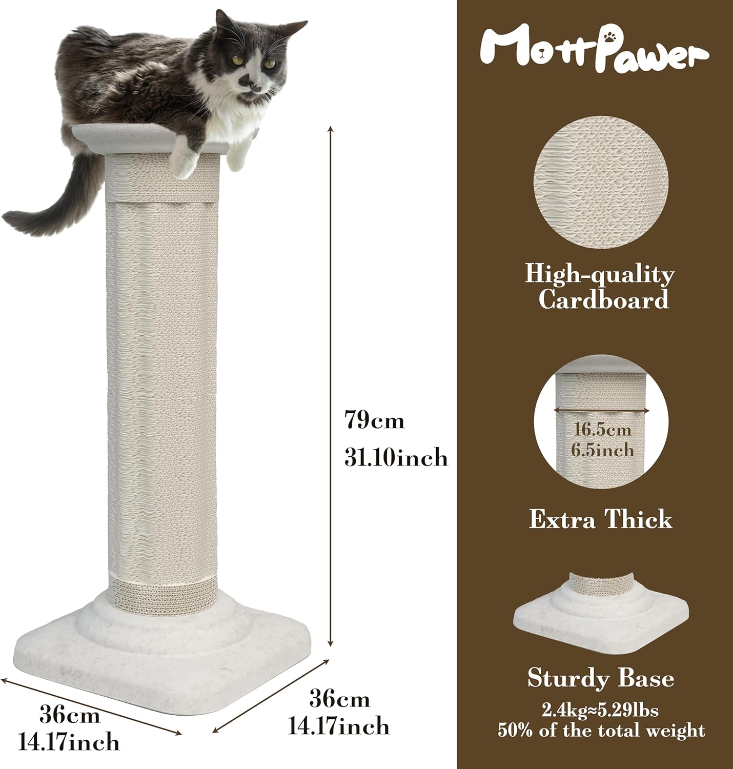 Cat Scratching Post for Indoor Cats, 31″ Tall Cat Scratcher with Heavy Base, Cardboard Cat Post for Scratching, Off-White