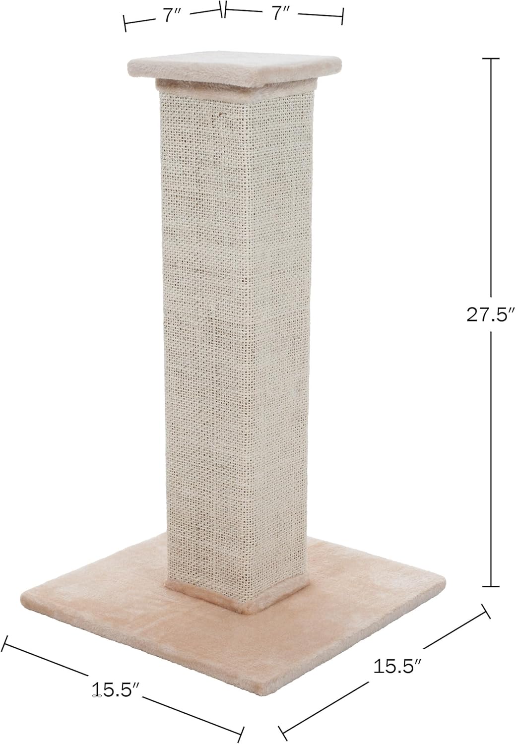 Cat Scratching Post with Carpeted Base – 27.75-Inch Sisal Burlap Fabric Scratcher – Furniture Scratching Deterrent for Indoor Cats by PETMAKER (Beige)