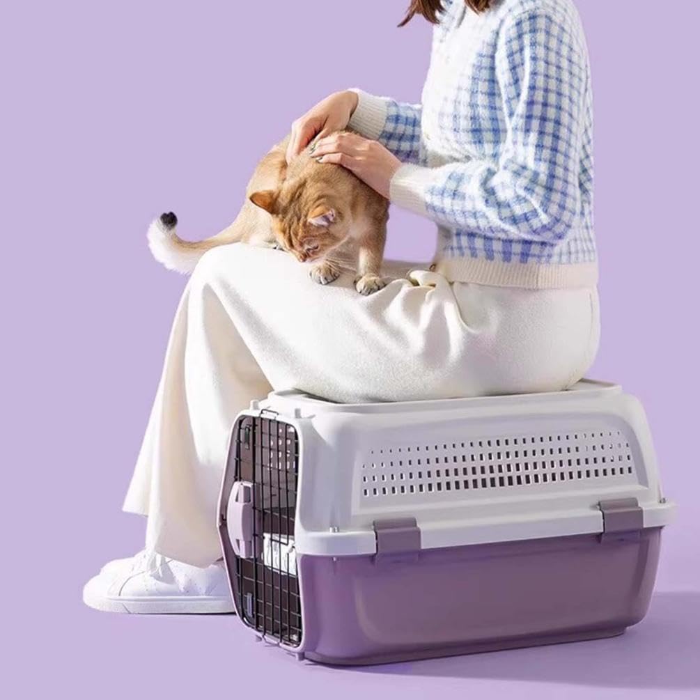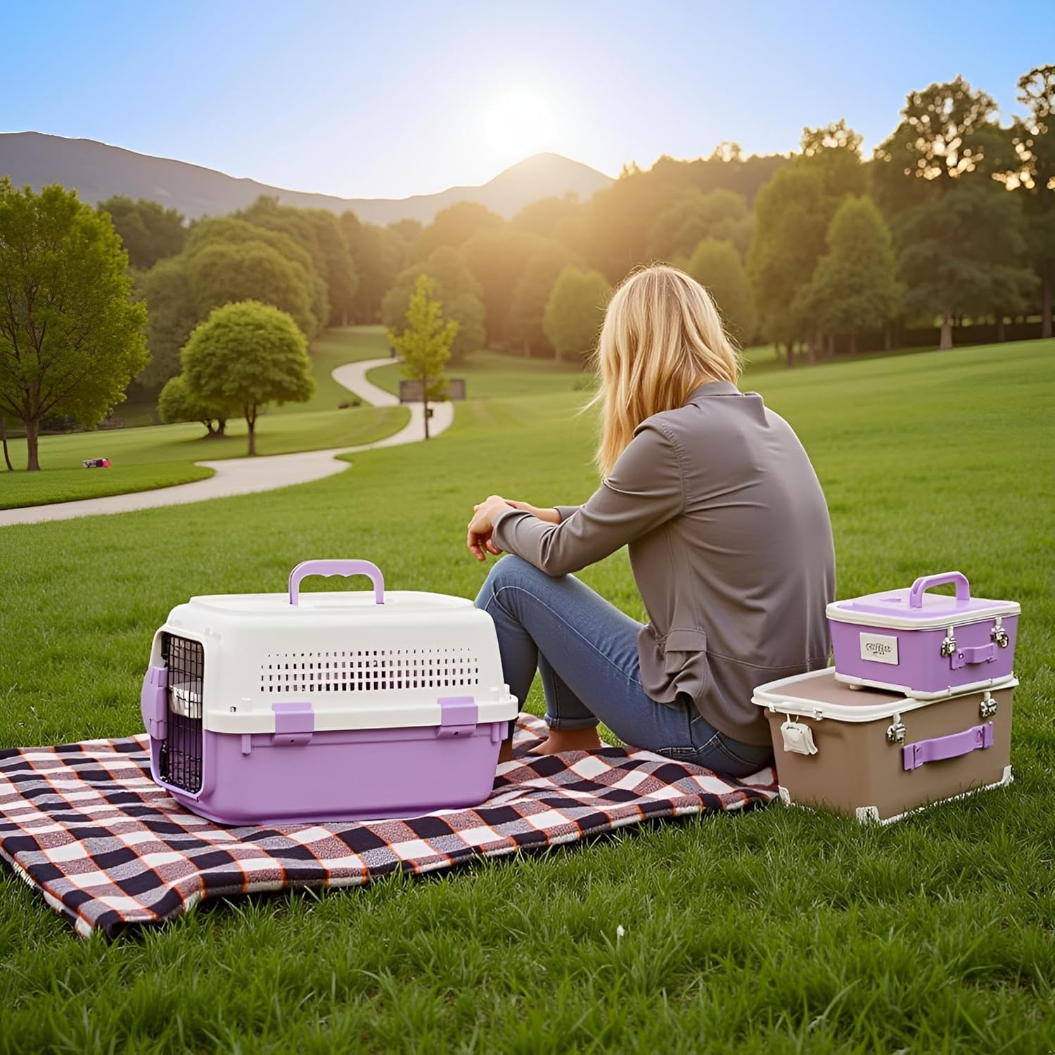 Cat Travel Carrier, Airline Pet Carrier, Portable Dog Crate, Hard Shell Kennel for Cats & Small Dogs, 360° Ventilation, Car Travel, Outdoor Hiking & Air Cargo Approved (Purple)
