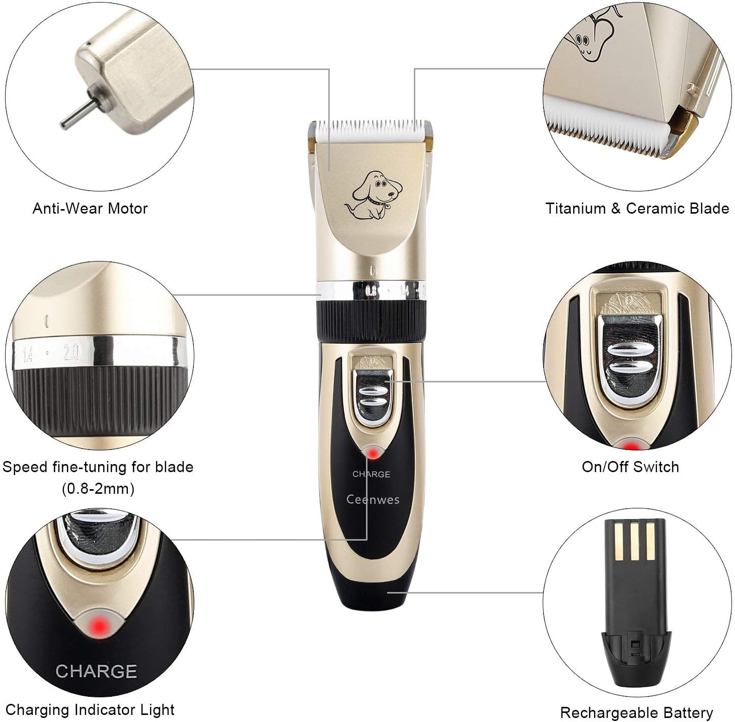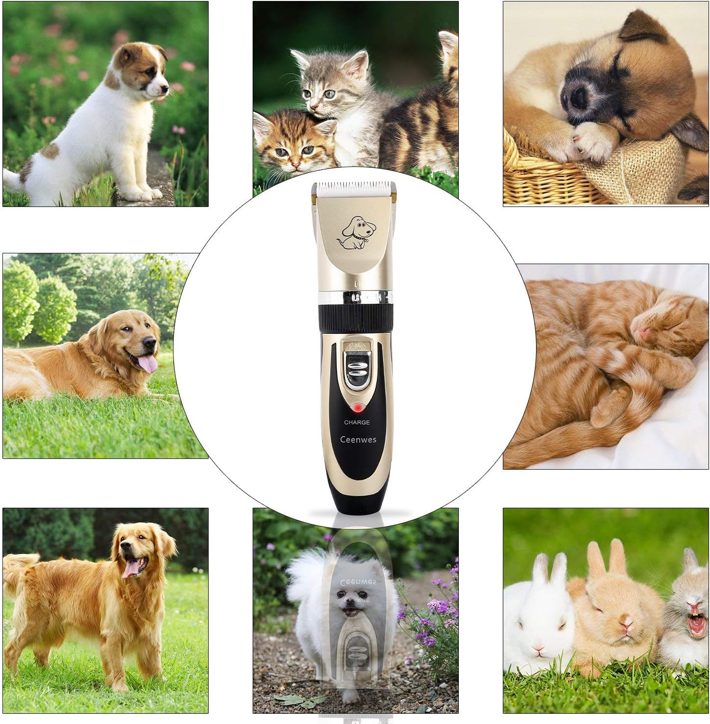 Ceenwes Dog Clippers Low Noise Pet Clippers Rechargeable Cat Trimmer Cordless Pet Grooming Tool Professional Dog Hair Trimmer with Comb Guides Scissors Nail Kits for Dogs Cats & Other Hairy Animals