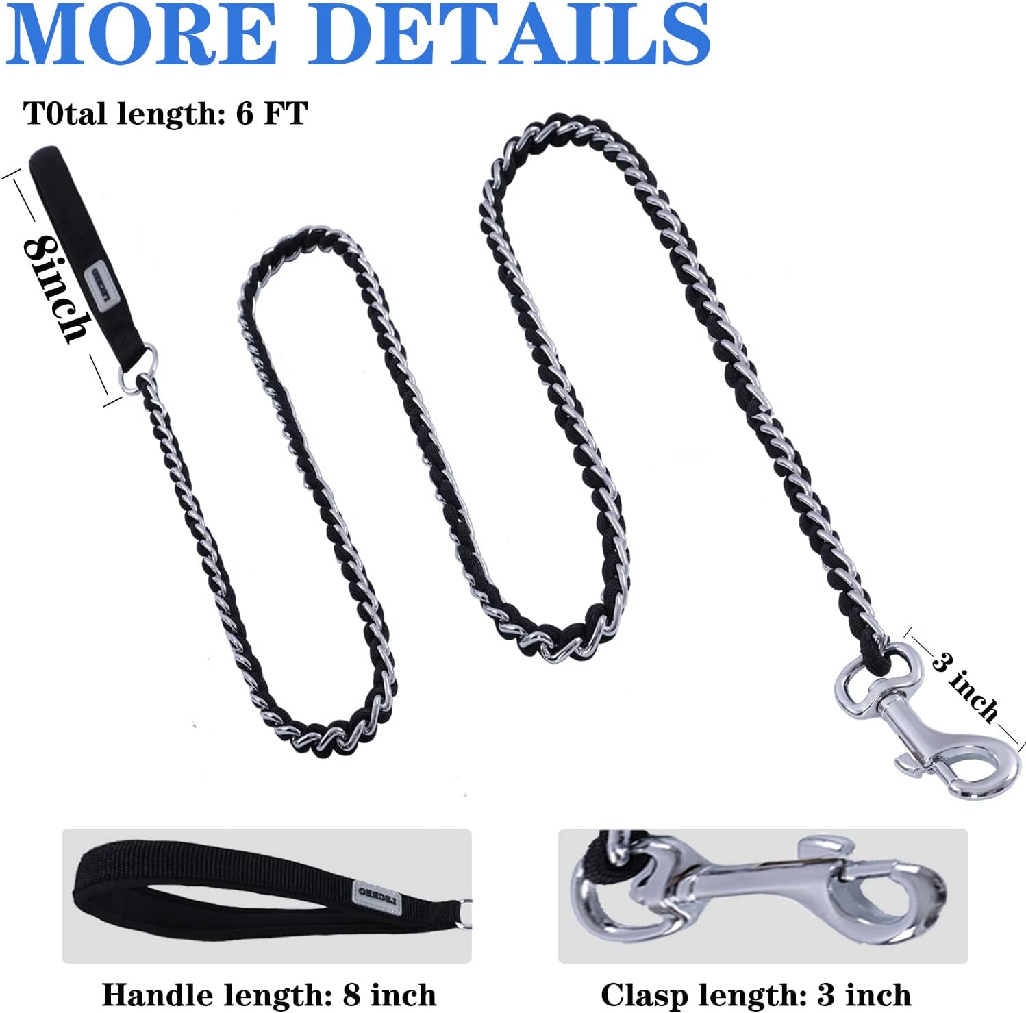 Chew Proof Dog Leash for Medium Large Breed Dogs 6FT/4FT, Heavy Duty Anti-Chew Metal Chain Leashes with Comfortable Handle by Lecreo