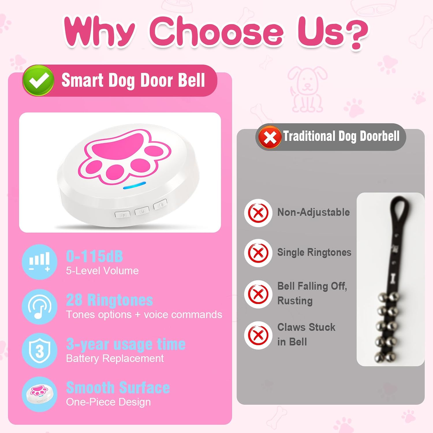 ChunHee Dog Bells to Go Outside – Bell for Dogs to Ring to Go Potty | Durable Chew-Resistant Design | 5 Adjustable Volume & 28 Custom Ringtones | Dog Bells to Go Outside Without Barking