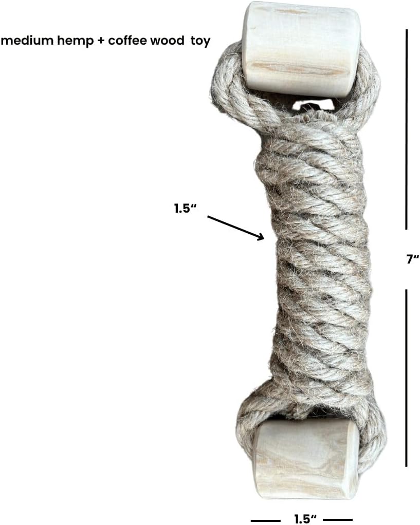Coffee Wood Dog Toy – Eco-Friendly, Durable, Non-Toxic Hemp Rope Dog Toy – Tough Chew & Tug Toy for Moderate Chewers – Safe Outdoor & Indoor Play for Medium Dogs, (1.5”x 7”x 1.5”)