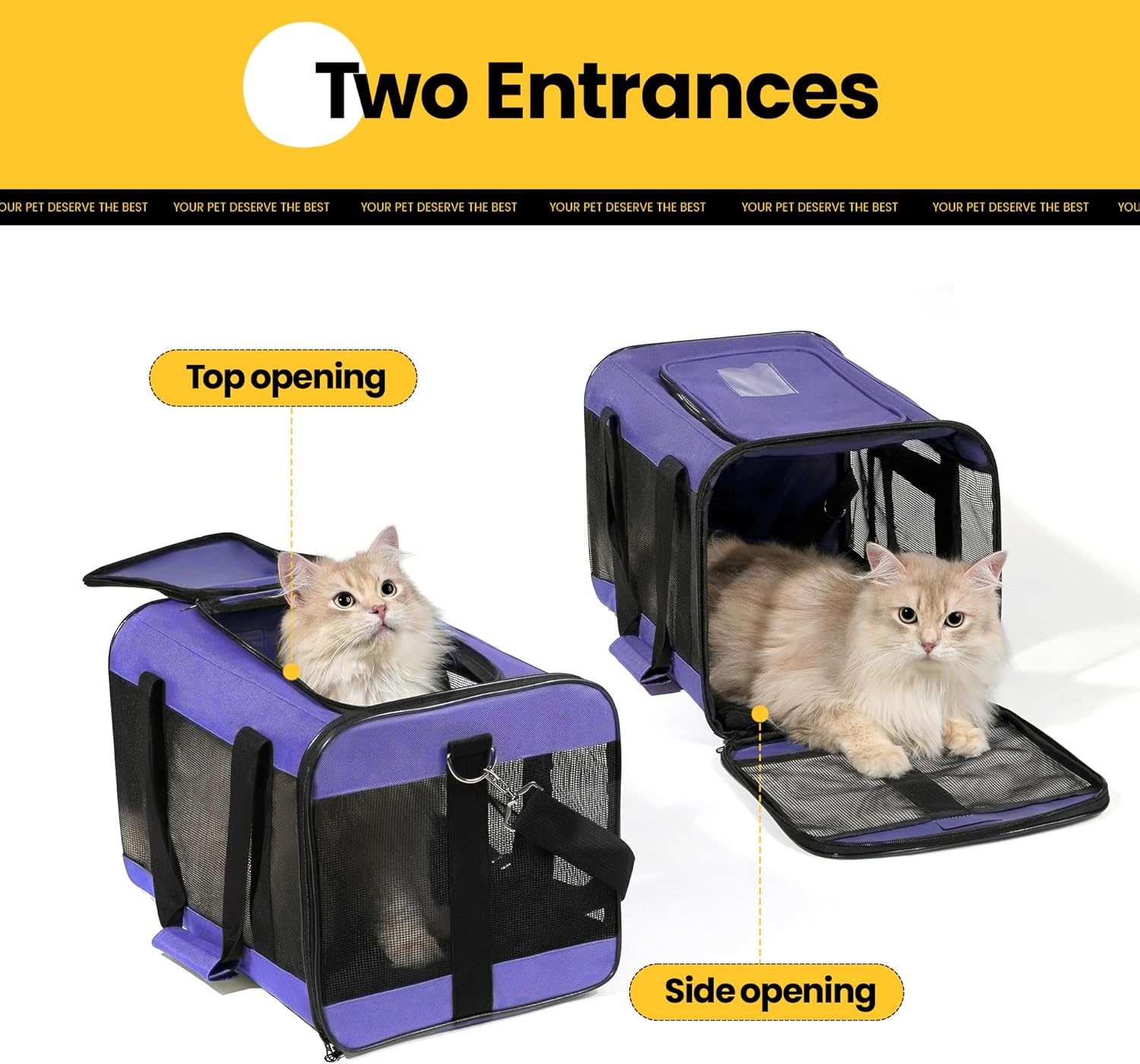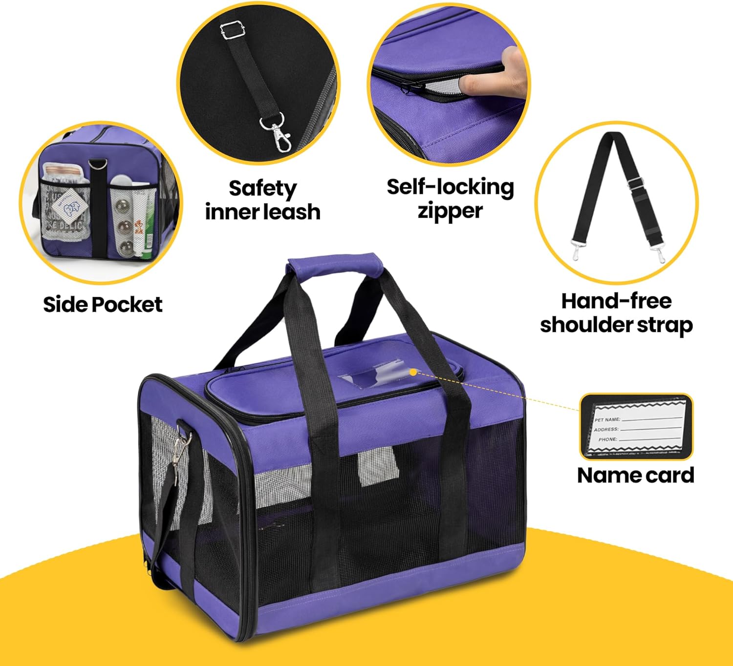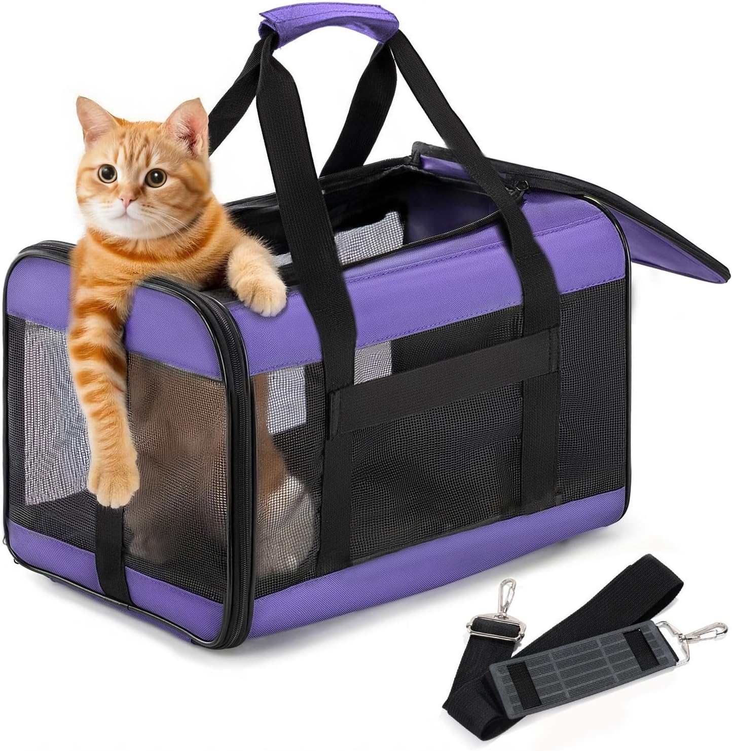 Conlun Cat Carrier Airline Approved, Soft-Sided Dog Carrier with Inner Safety Leash, Pet Transport Carrier for Small-Medium Cats Puppies up to 15 Lbs, Collapsible Travel Kitten Carrier Bag -Purple M