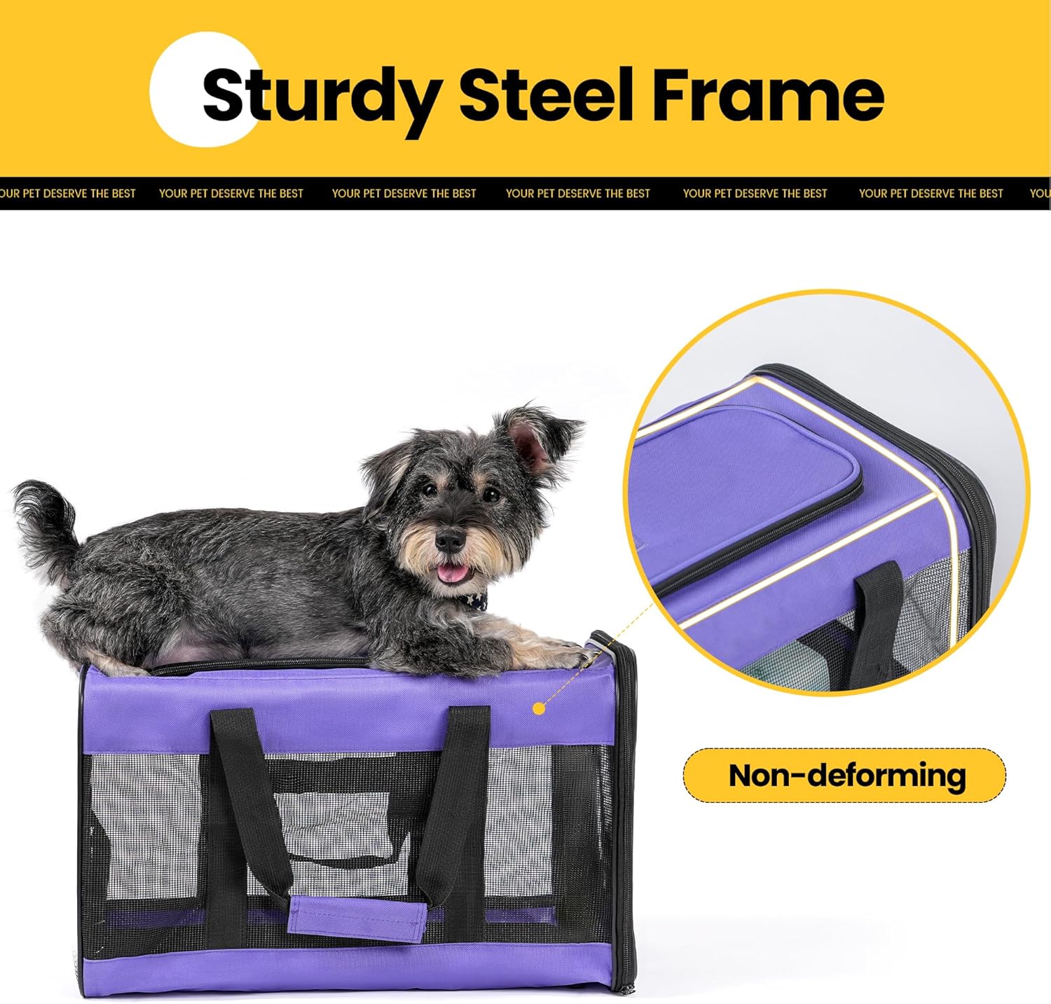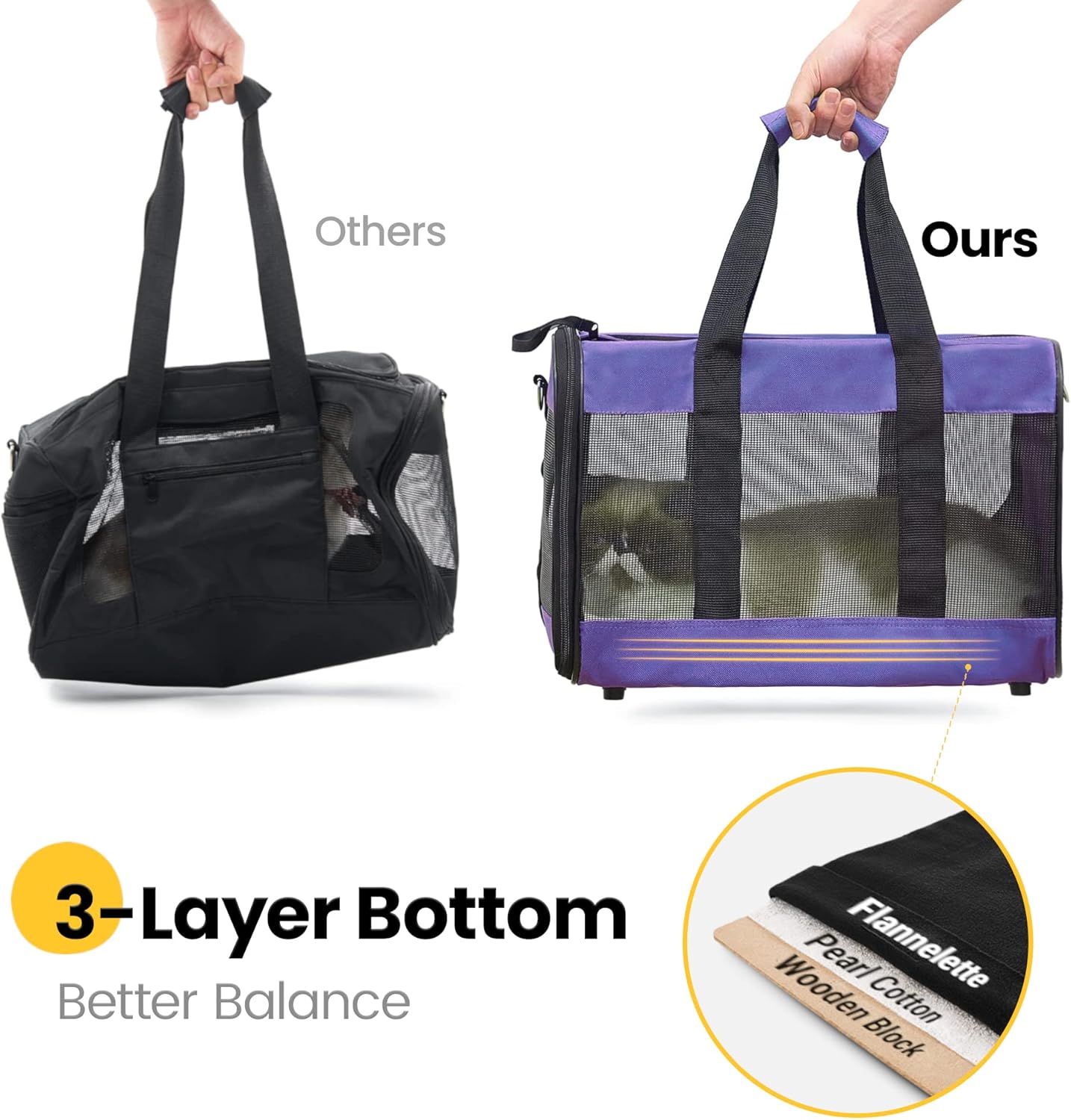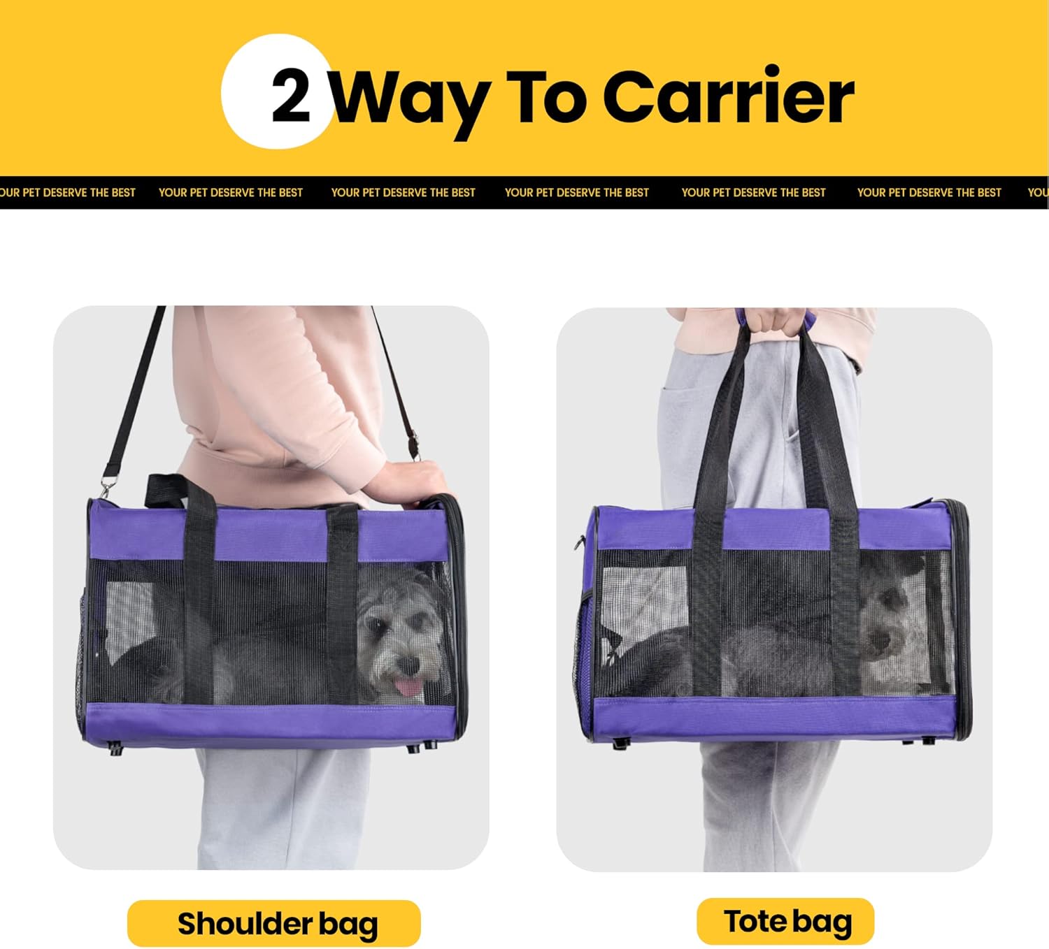 Conlun Cat Carrier Airline Approved, Soft-Sided Dog Carrier with Inner Safety Leash, Pet Transport Carrier for Small-Medium Cats Puppies up to 15 Lbs, Collapsible Travel Kitten Carrier Bag -Purple M