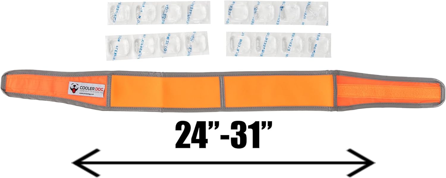 CoolerDog Hi-Vis Dog Cooling Collar – Orange Reflective Re-Freezable Ice Collar (X-Large)