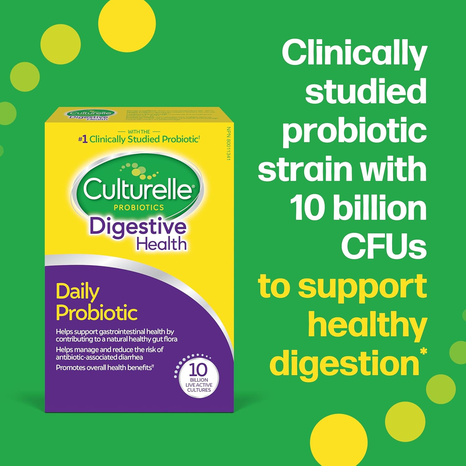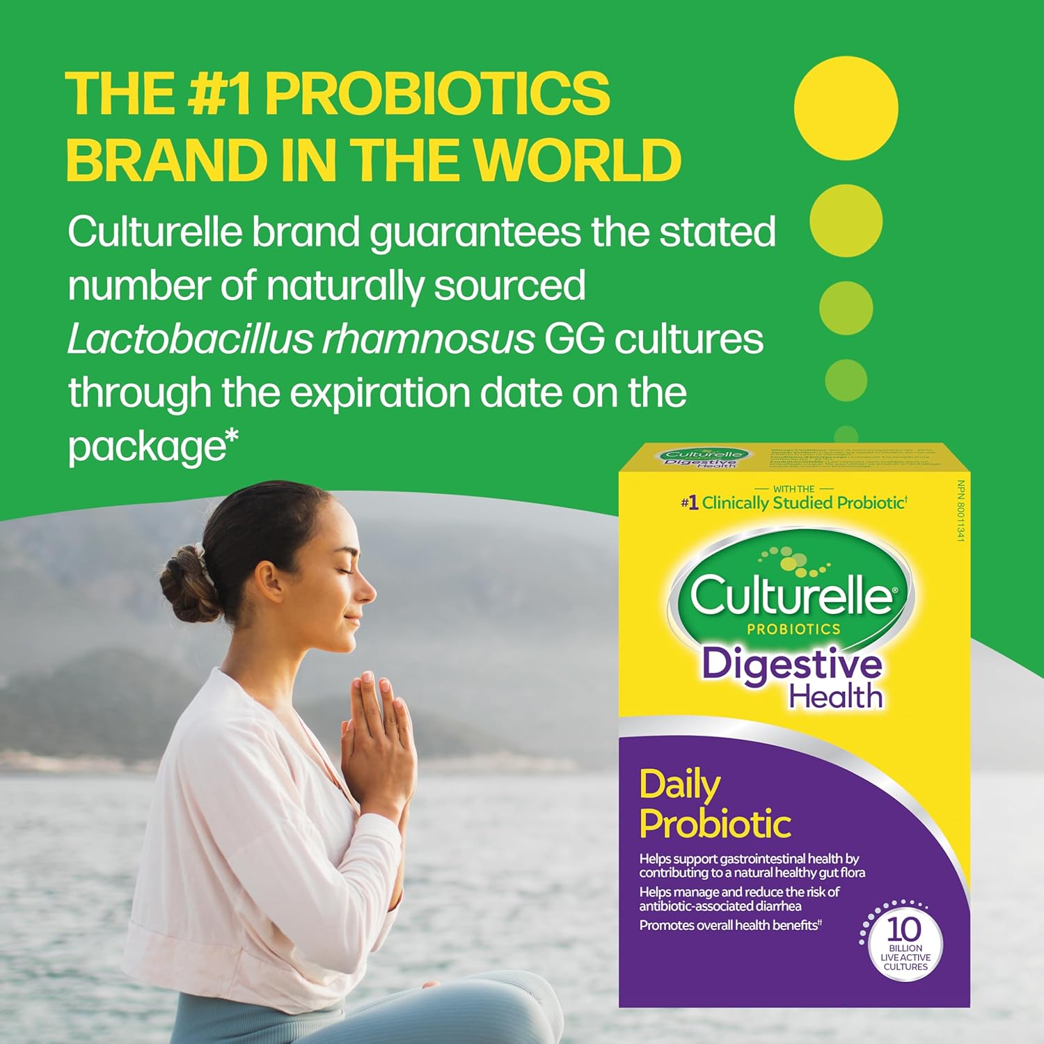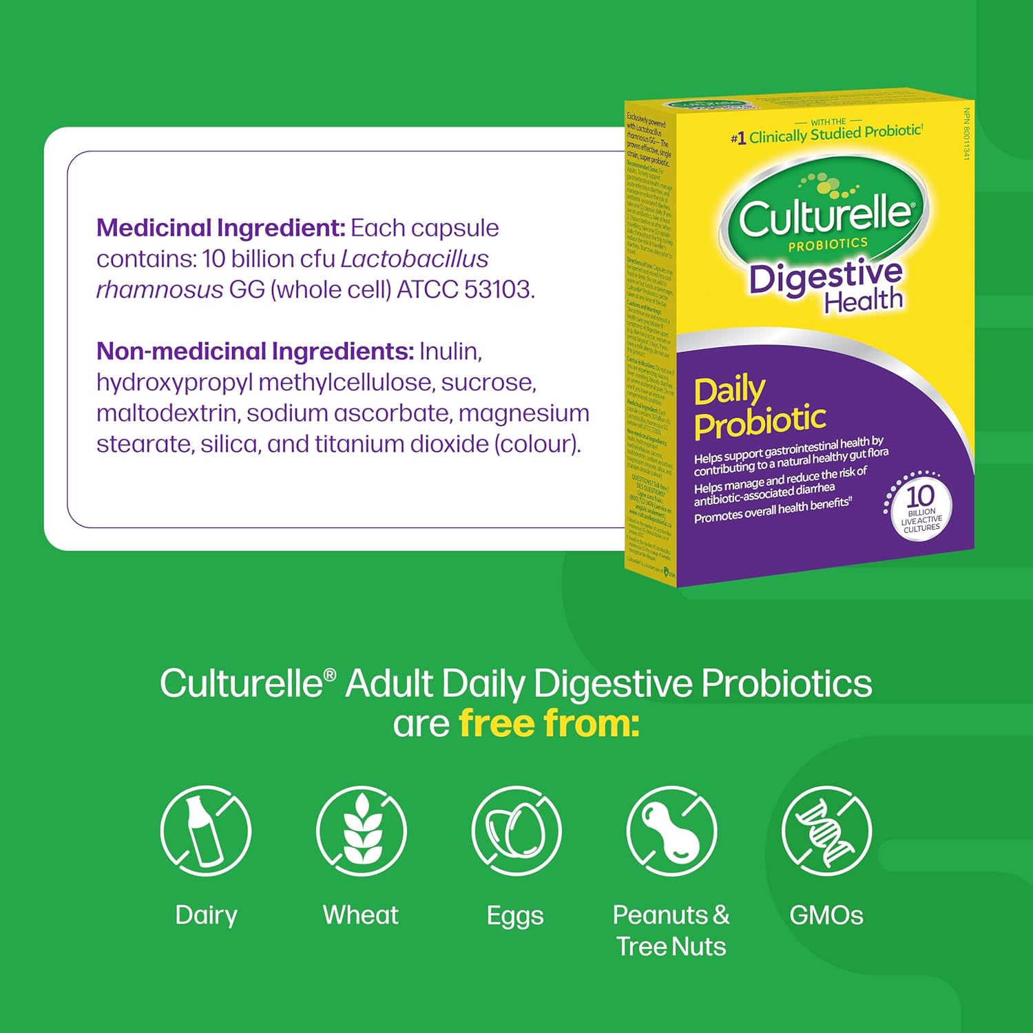 Culturelle Daily Digestive Health Daily Probiotic for Men and Women | With 100% Naturally Sourced Lactobacillus GG Strain †††††† | Pharmacist Recommended ††††† | Gluten Free and Vegan | 30 Count Capsules