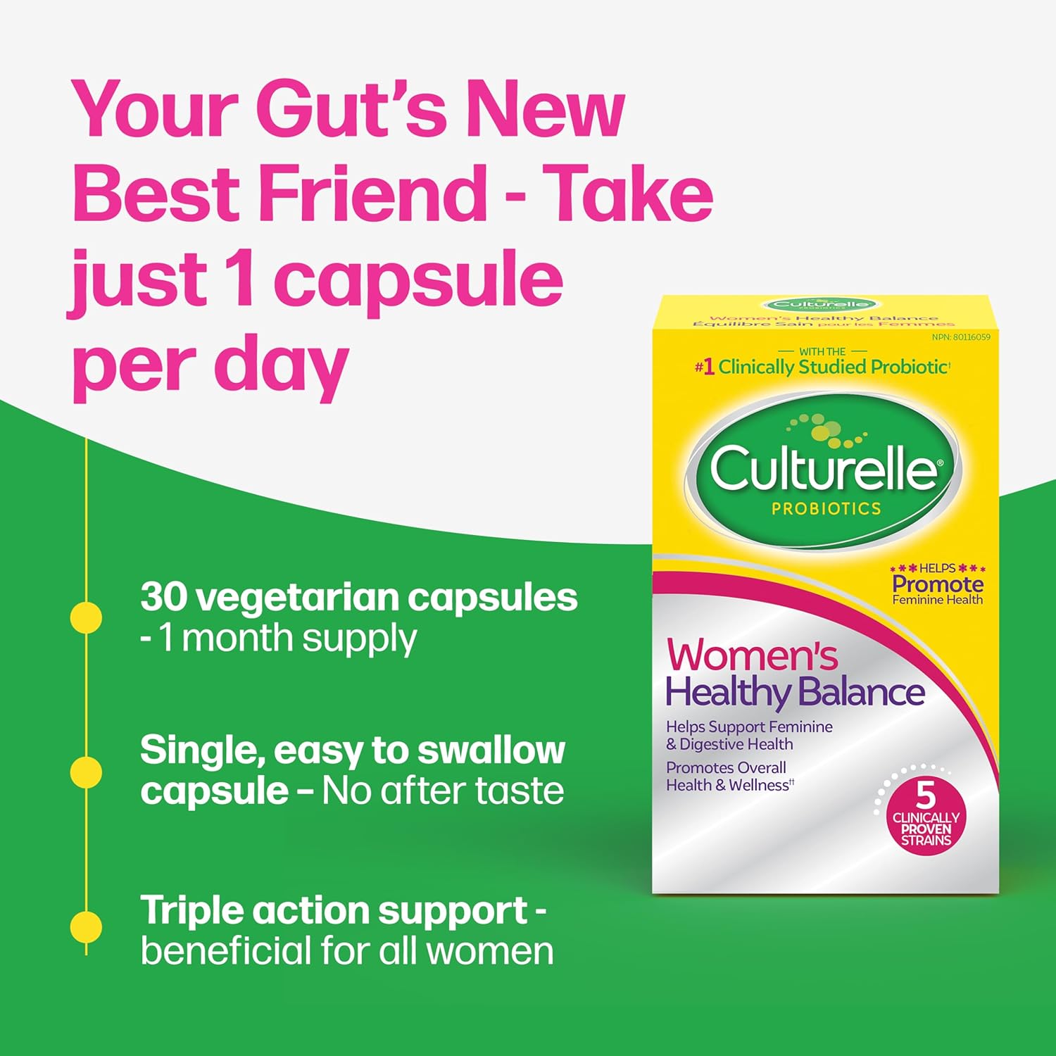 Culturelle Probiotics, Women’s Healthy Balance, 30 Capsules, 5 Clinically Proven Probiotic Strains to Support Digestive, Immune & Vaginal Health