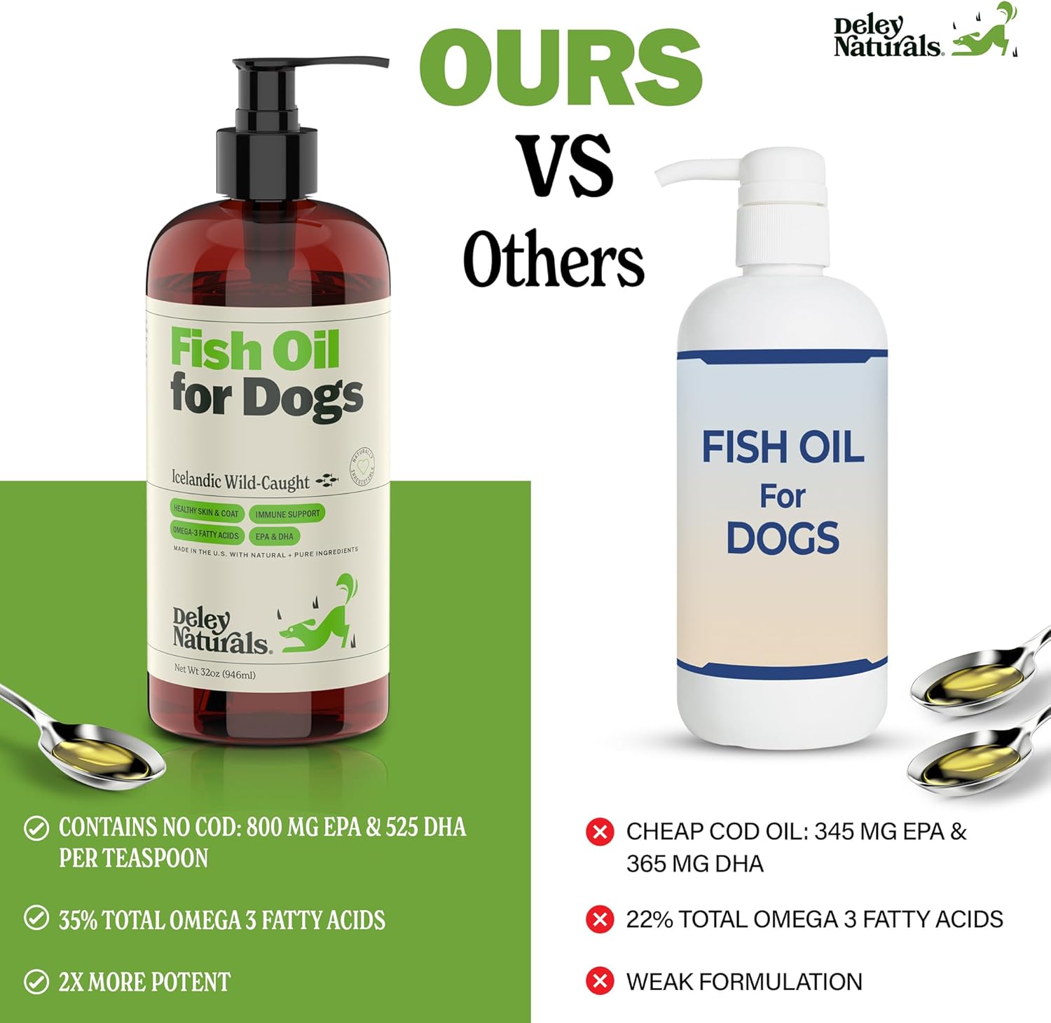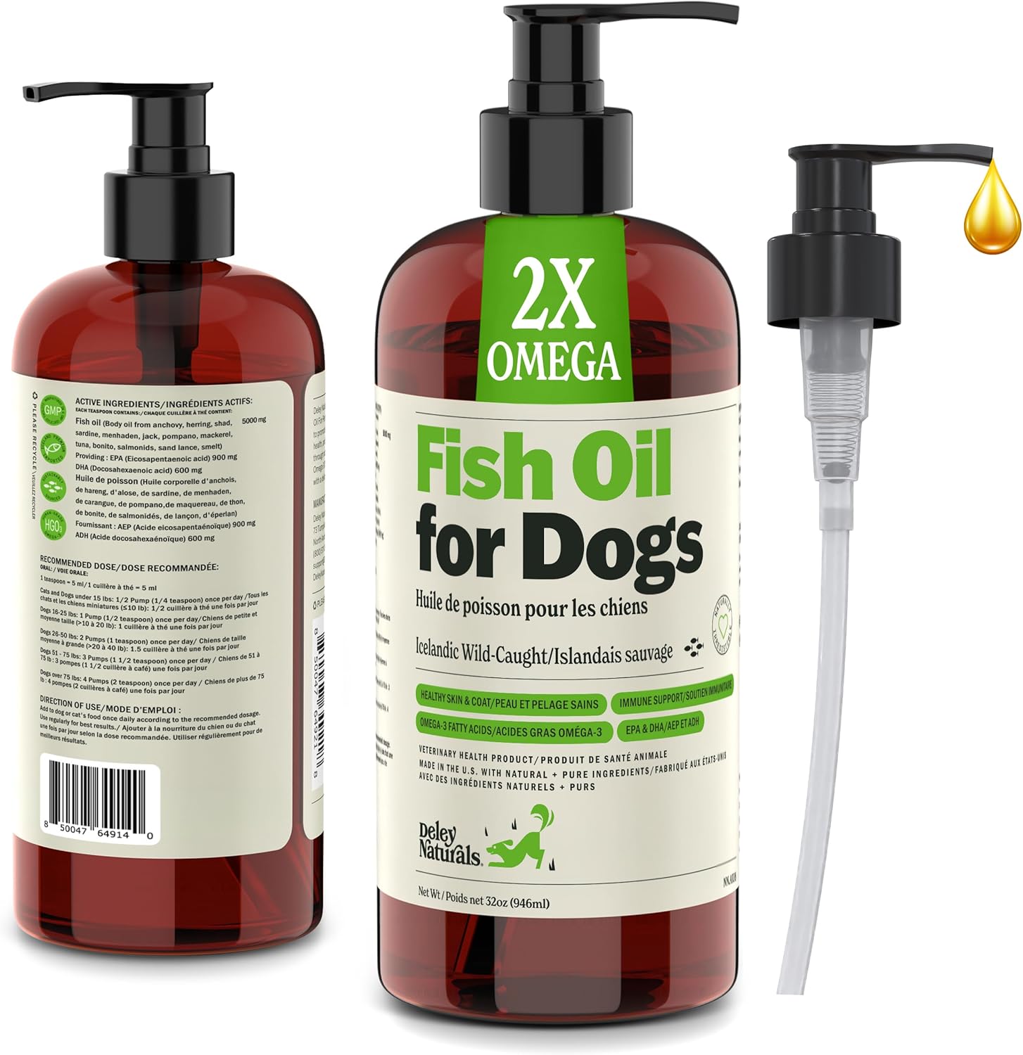 Deley Naturals Fish Oil for Dogs 2X Omega – Icelandic Fish Oil for Dogs – Dog Supplements with Omega 3 6 9 for Skin and Immunity – Vitamins and Supplements High EPA & DHA for Optimal Wellness – 946ml