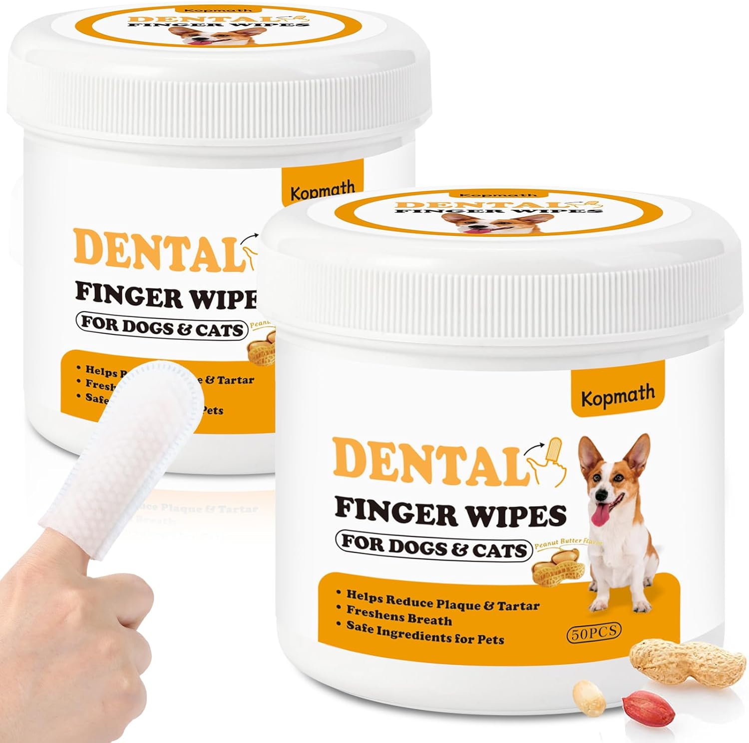 Dental Care Finger Wipes for Dogs & Cats, Reduces Plaque & Tartar Freshens Breath, Pre-Soaked Pet Teeth Wipes, Easy to Use Disposable Oral Cleaning Pads, 100 Count, Peanut Flavor
