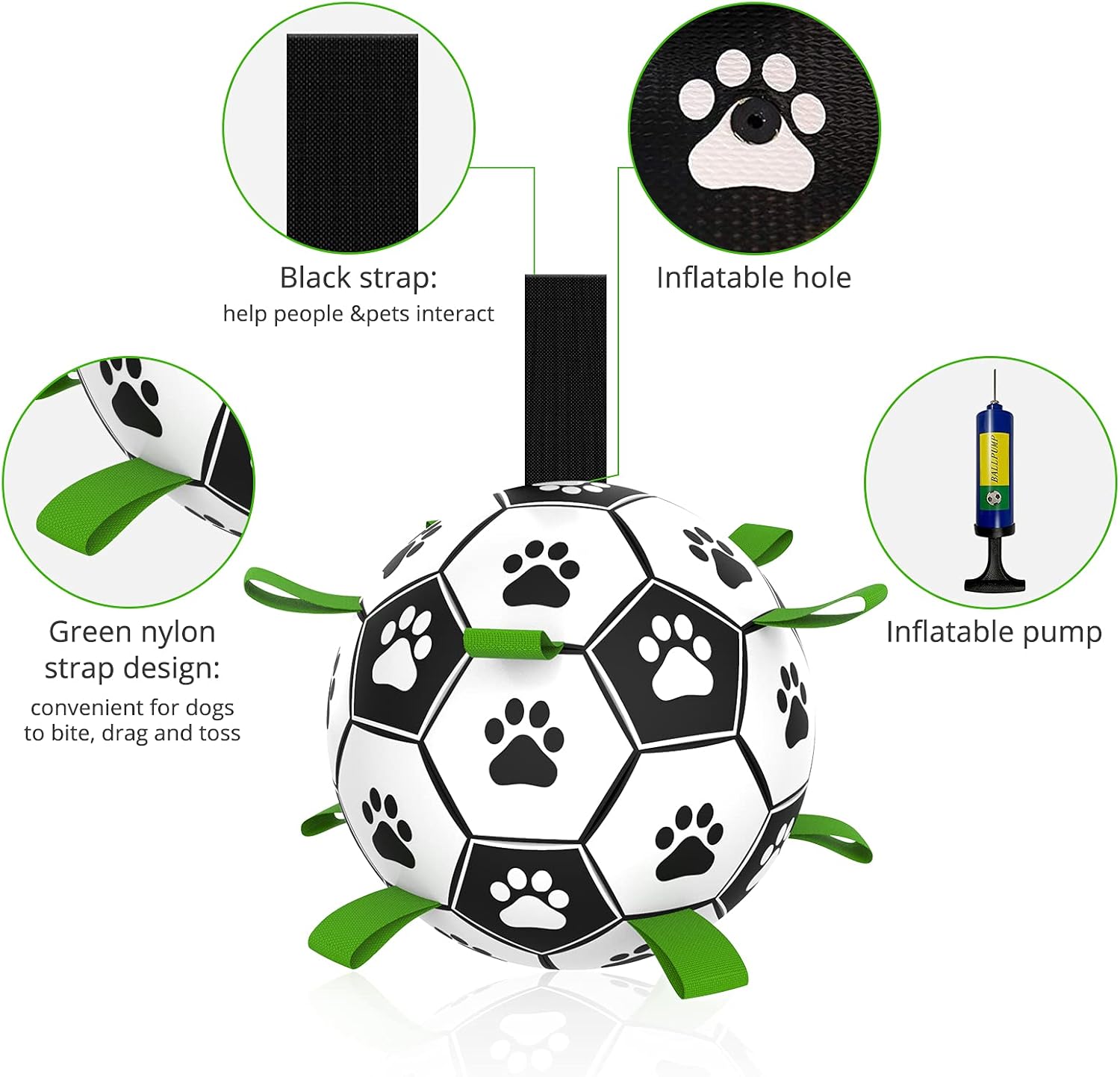 Dog Ball, Dog Soccer Ball, Pakaserily Dog Toy with Straps, Interactive Dog Football, 7.5inch Herding Balls, Durable TPU Fetch Toy for Pet Birthday Gifts – for Medium, Large Dogs (25-90lbs)