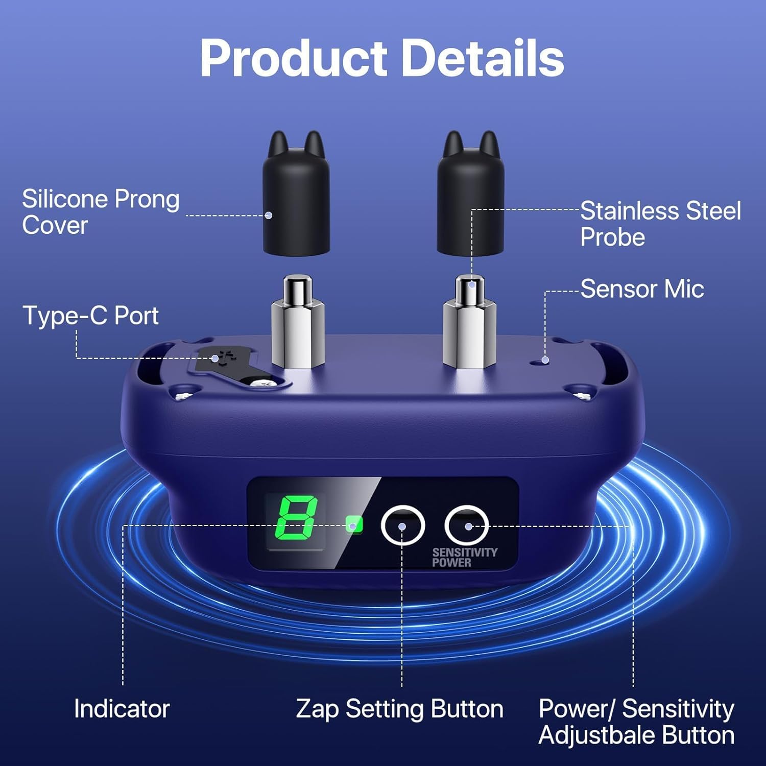 Dog Bark Collar for Large Medium Dogs,Automatic Anti-Barking Collar with 8 Adjustable Sensitivity & 3 Effective Training Modes (Midnight)