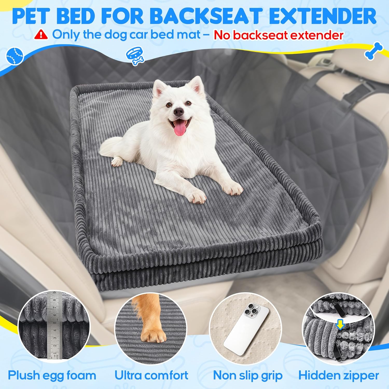 Dog Car Bed, Non-Slip Backseat Extender Pet Mat, Removable Washable Dog Bed for SUVs, Sedans & Trucks, Anti-Slip Travel Bed for Dogs, Easy Clean & Scratch-Proof & Comfort (Dark Gray, 50″L×24.6″W×2″H)