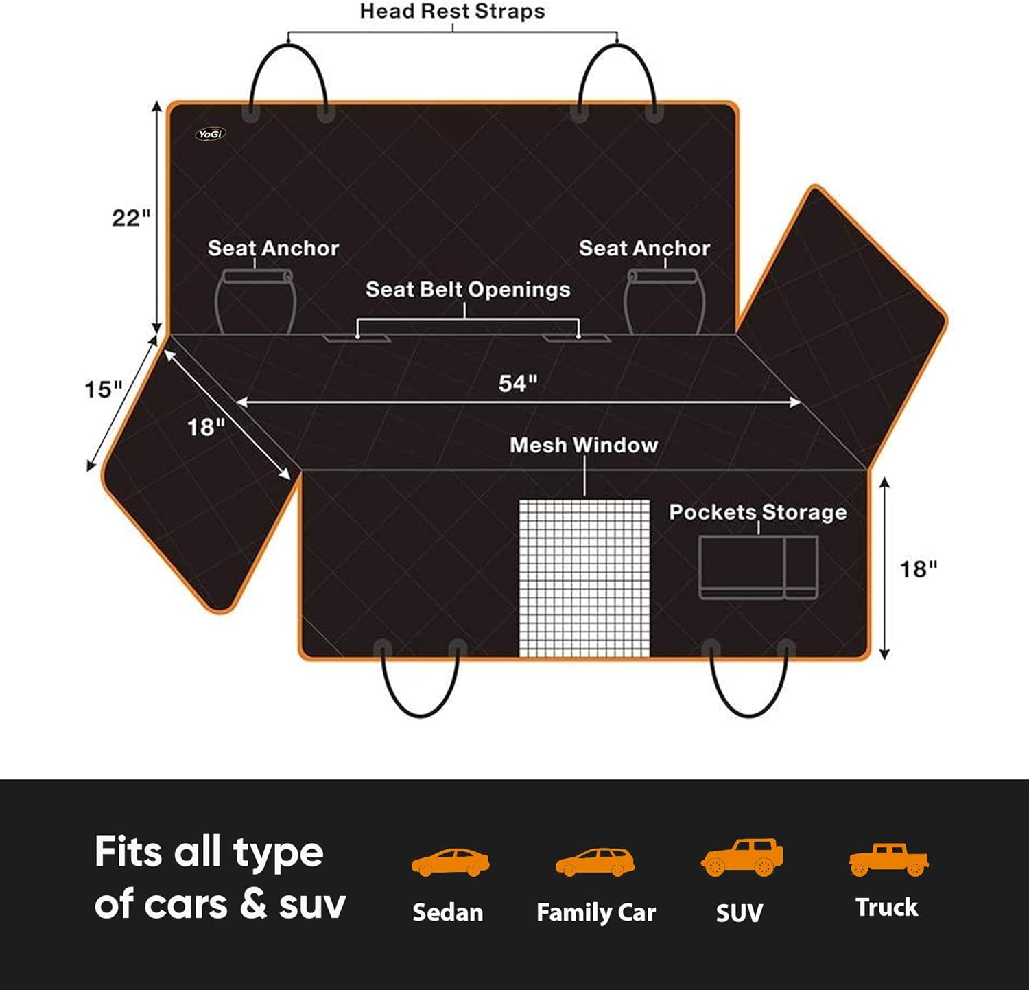 Dog Car Seat Cover | Dog Seat Cover for Back Seat | Large Waterproof Pet Seat Protector with Mesh Viewing Window, Non Slip and Scratch Resistant