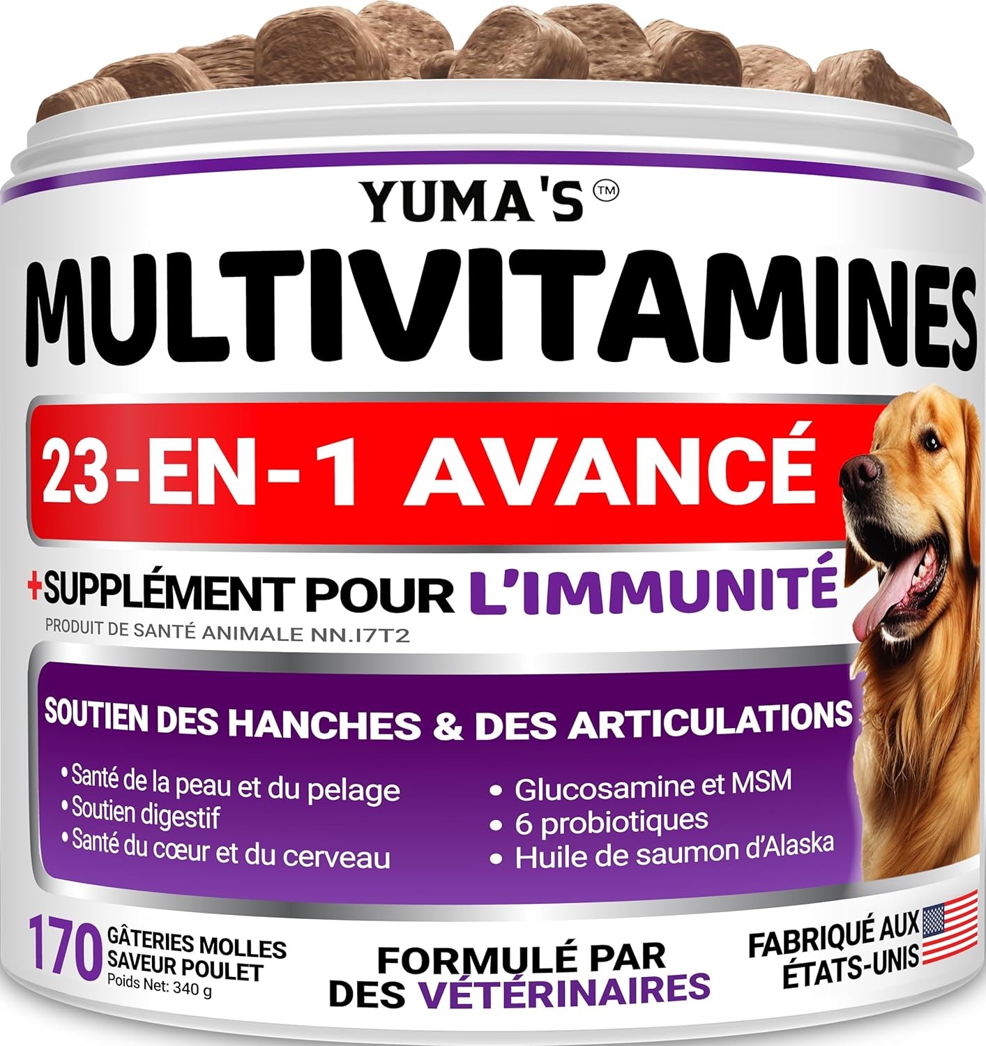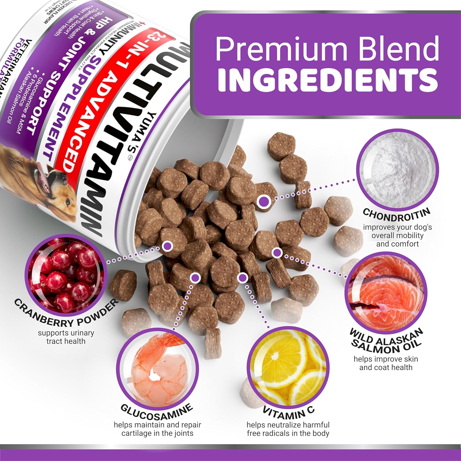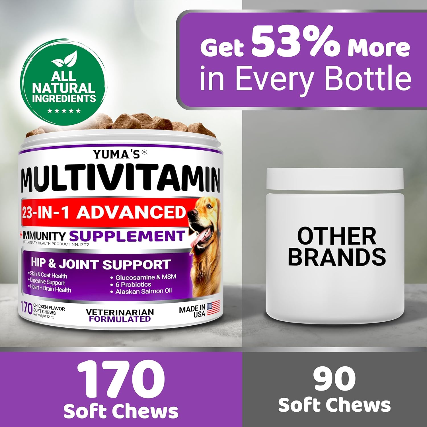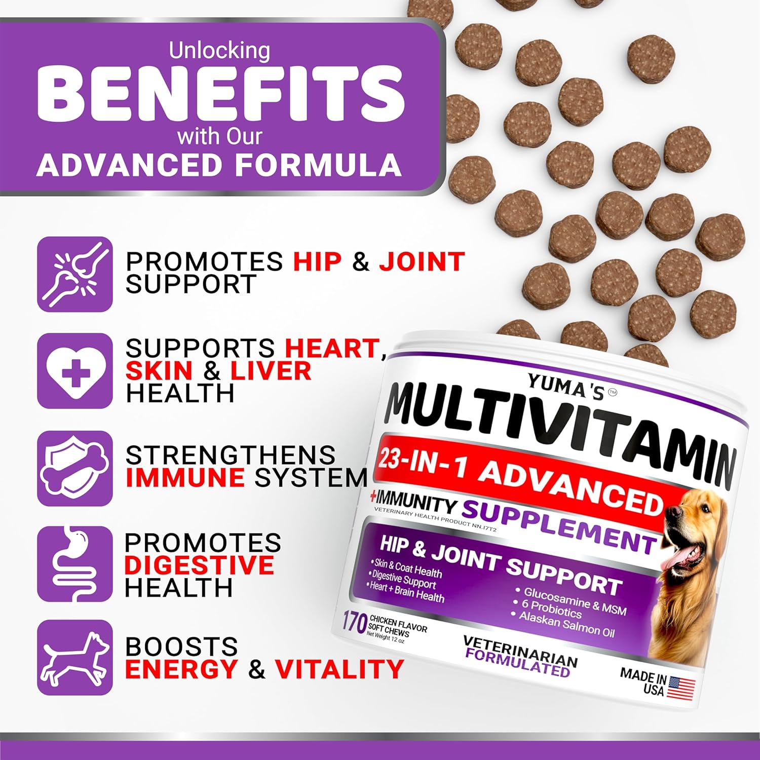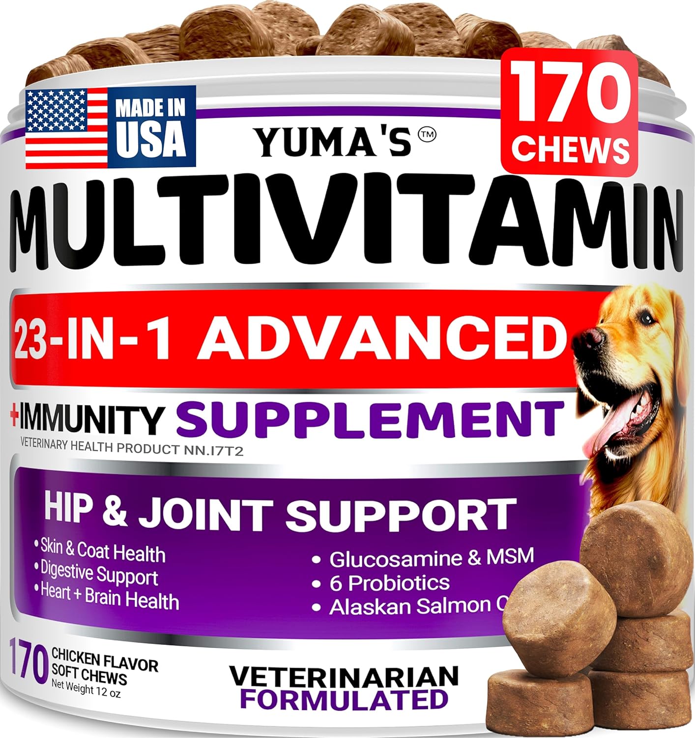 Dog Multivitamin Chewable with Glucosamine – 170 Chews – Dog Vitamins and Supplements 23 in 1 – Senior & Puppy Multivitamin for Dogs – Hip & Joint Support – Immune Health, Skin, Digestion