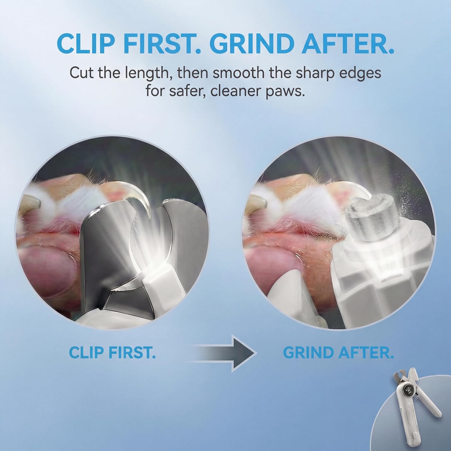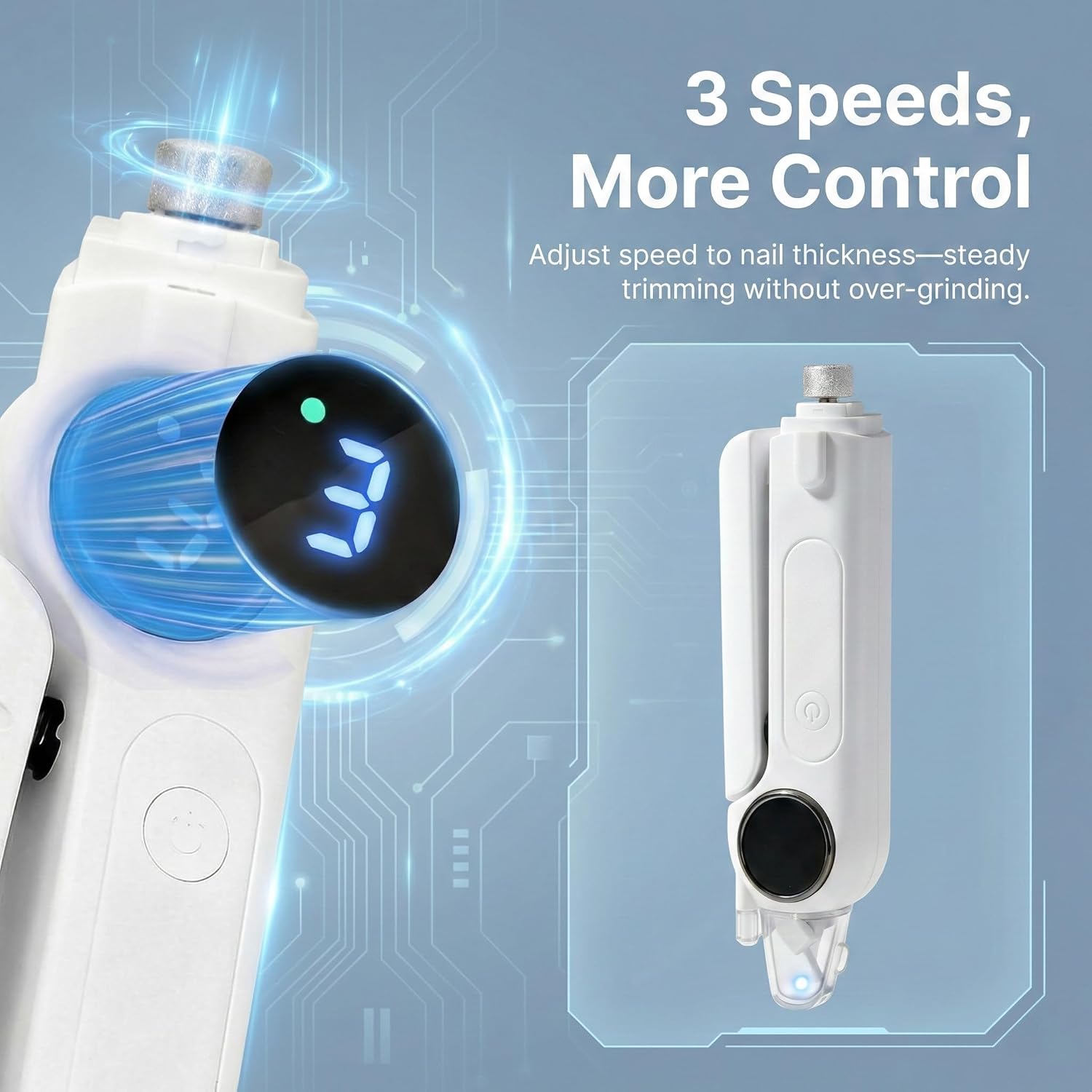 Dog Nail Clippers & Grinder 2-in-1 – Electric Pet Trimmer with LED Light, Quiet 3-Speed File with Splash Guard, Low Vibration Cordless, USB Type-C Rechargeable for Large Medium Small Dogs and Cats