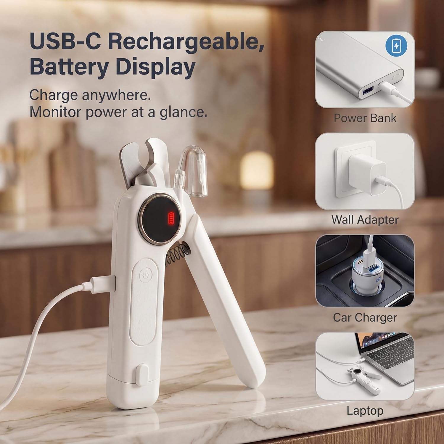 - USB Type-C rechargeable for easy power