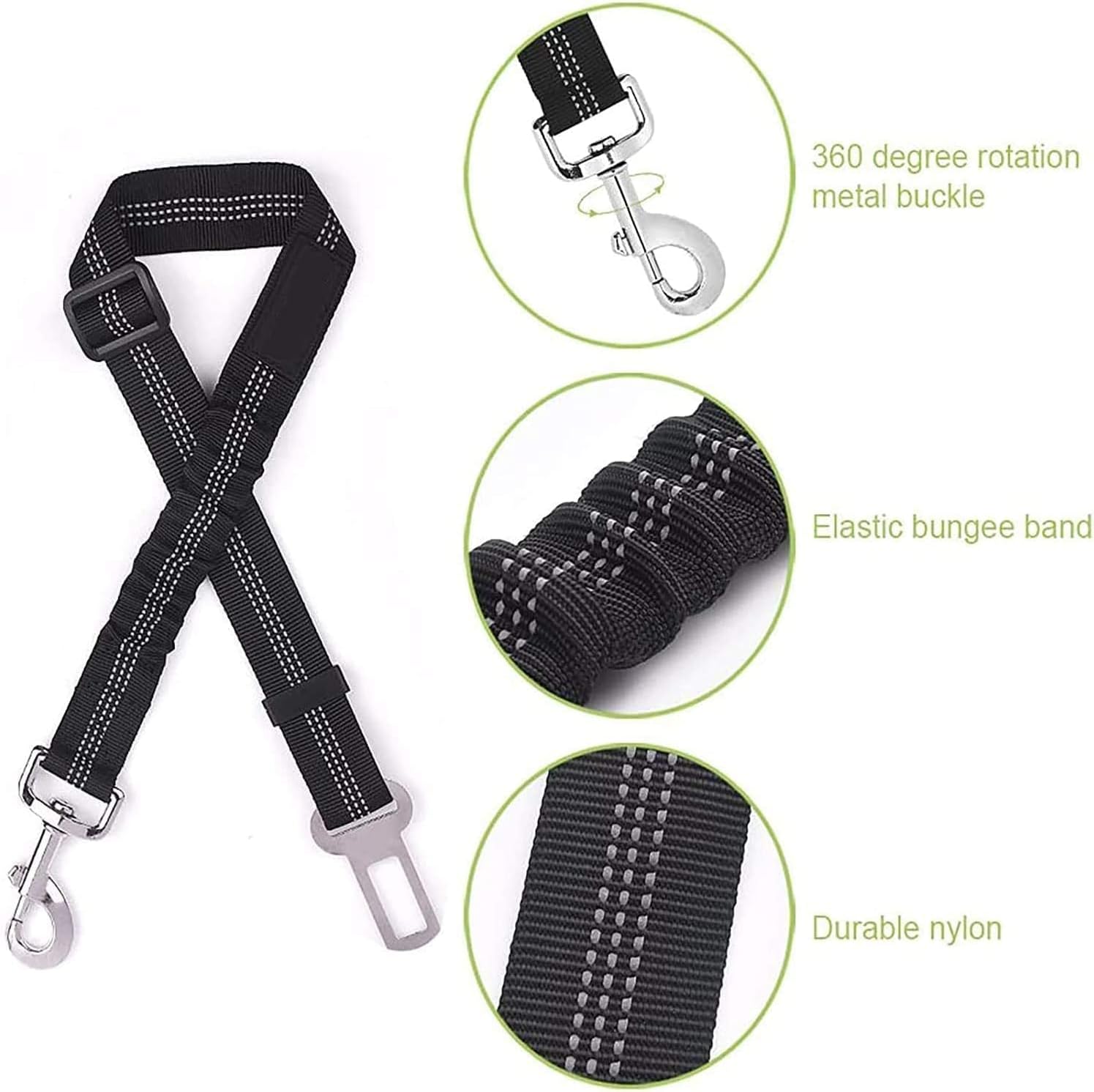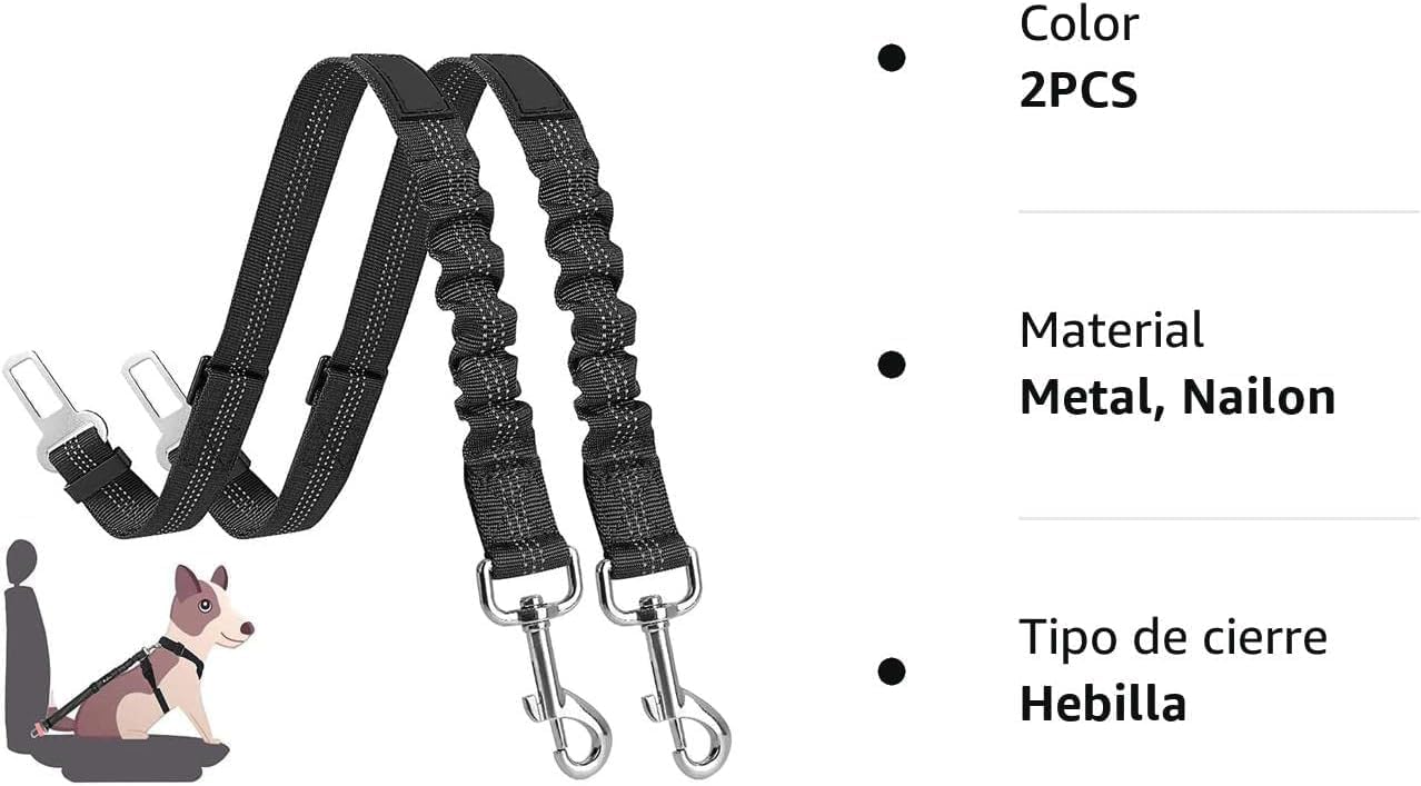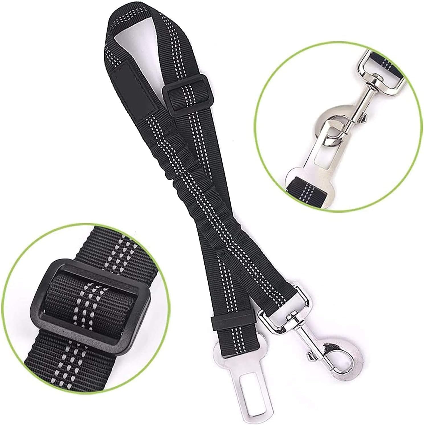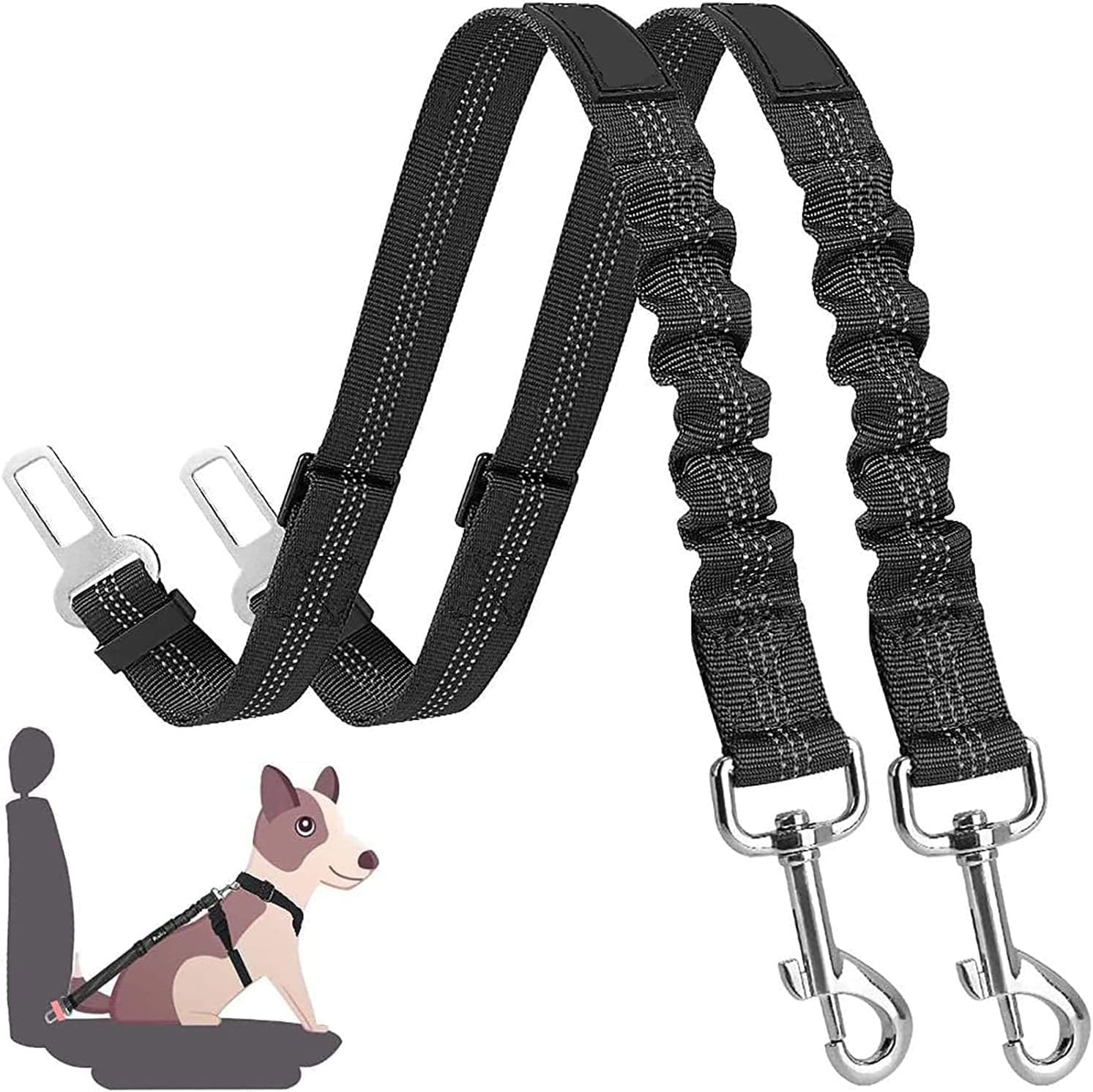 Dog Seat Belts for Car, [2 Packs] Headrest Restraint Puppy Safety Adjustable Dog Car Seatbelts and Strong Leash Leads Accessories for Dogs Cats Pets, Black