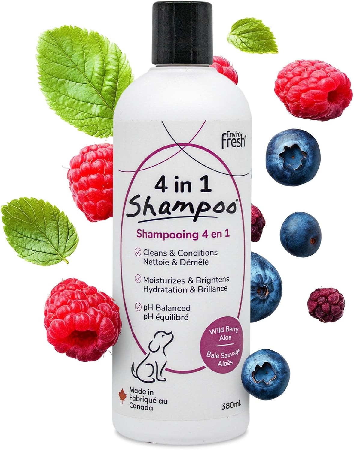 Dog Shampoo, Gentle 4-in-1 Conditioner, Wild Berry Aloe Scent, 380mL, Brighten, Moisturize, Itch Relief for Pets, Cats & Dogs, Sensitive Skin, Groomers, Kennels, Salons, EnviroFresh#624