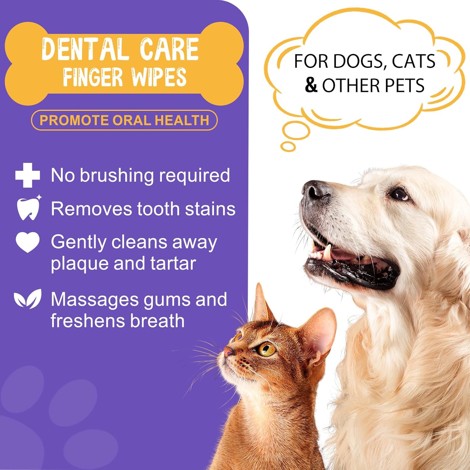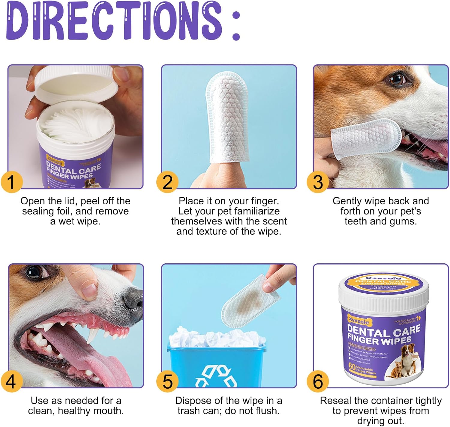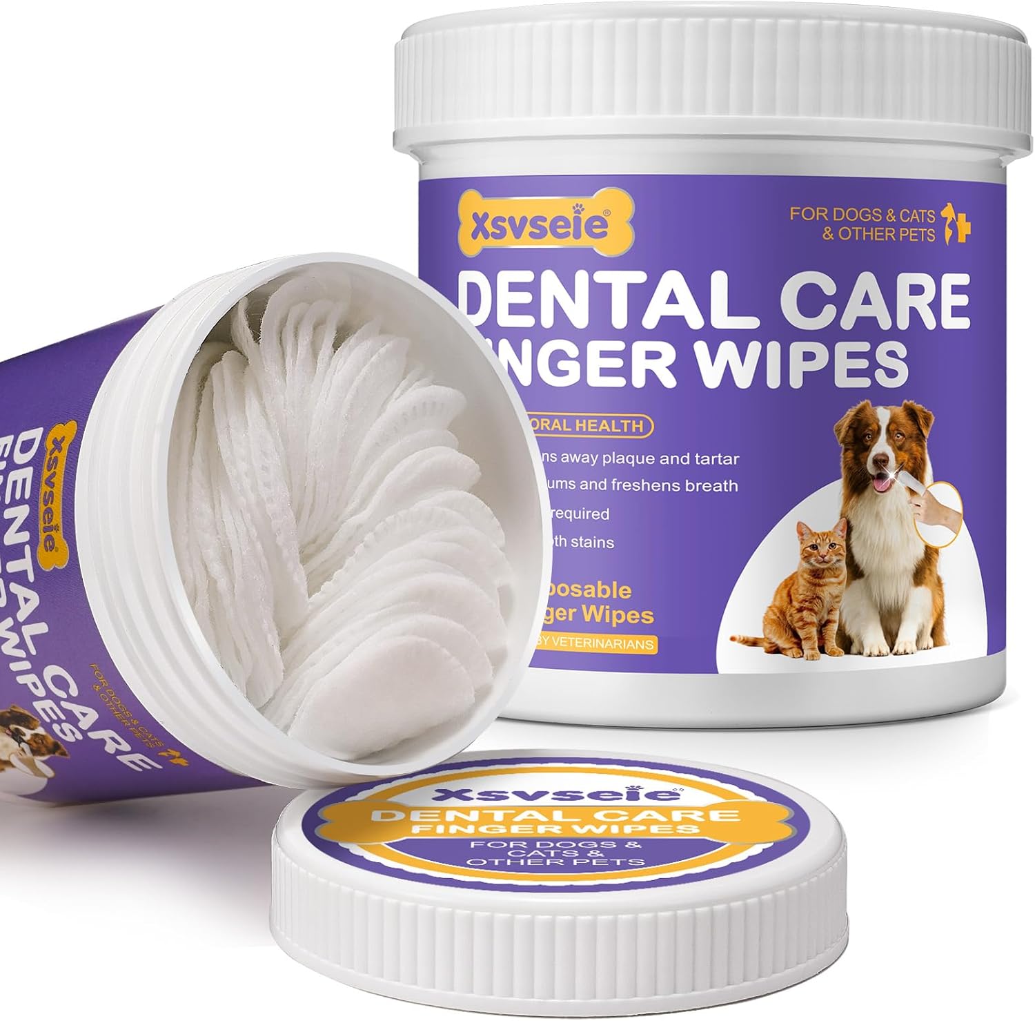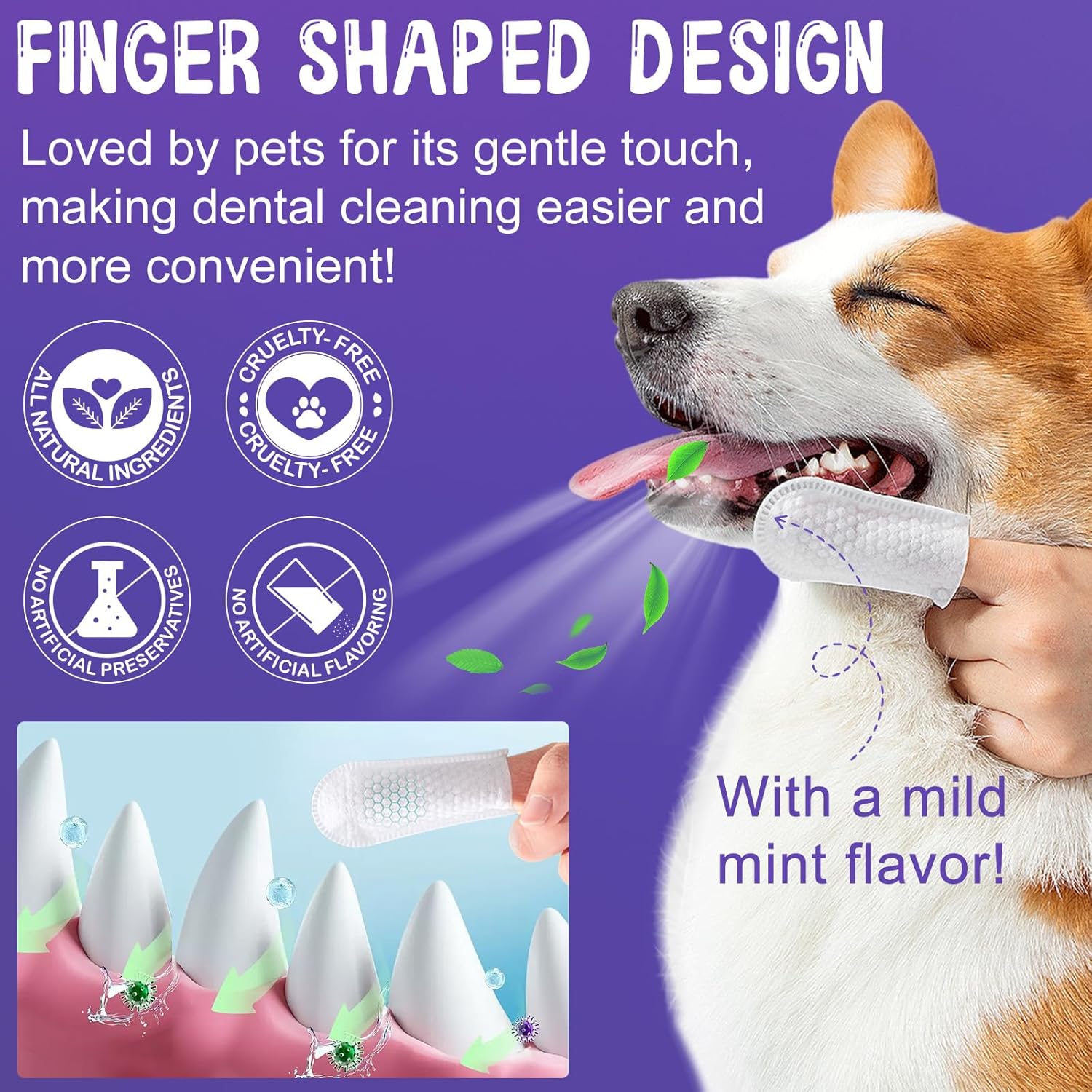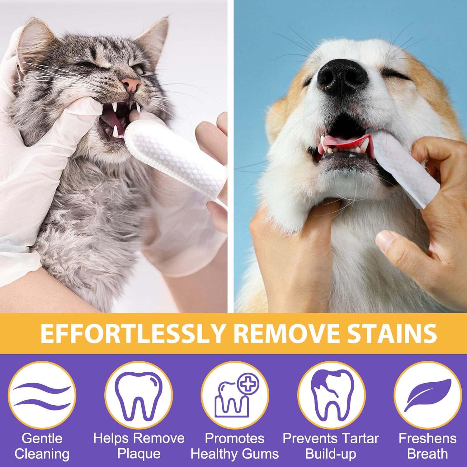 Dog Teeth Cleaning Wipes, 60 PCS Dental Finger Wipes for Dogs & Cats, Remove Plaque & Tartar, Freshen Breath, Pet Dental Care Finger Toothbrush Wipes