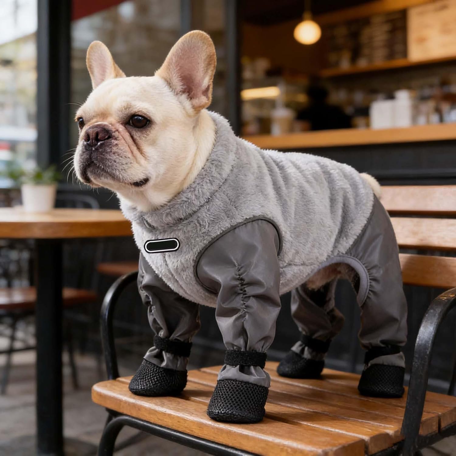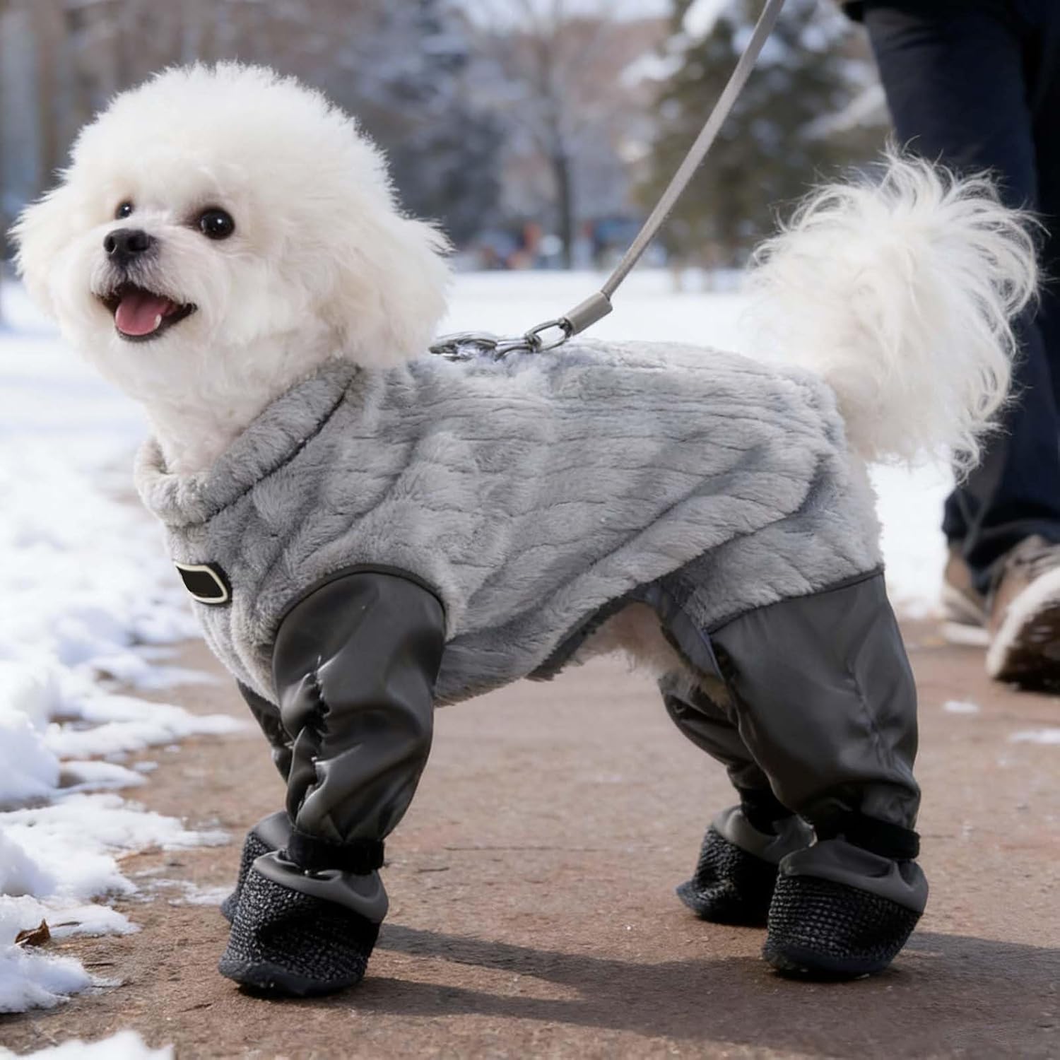 Dog Winter Coat, Waterproof Insulated Quilted Full Body Suit with Attached Boots for Small Medium Dogs, Reflective Outdoor Walking Snow Outfit (L)