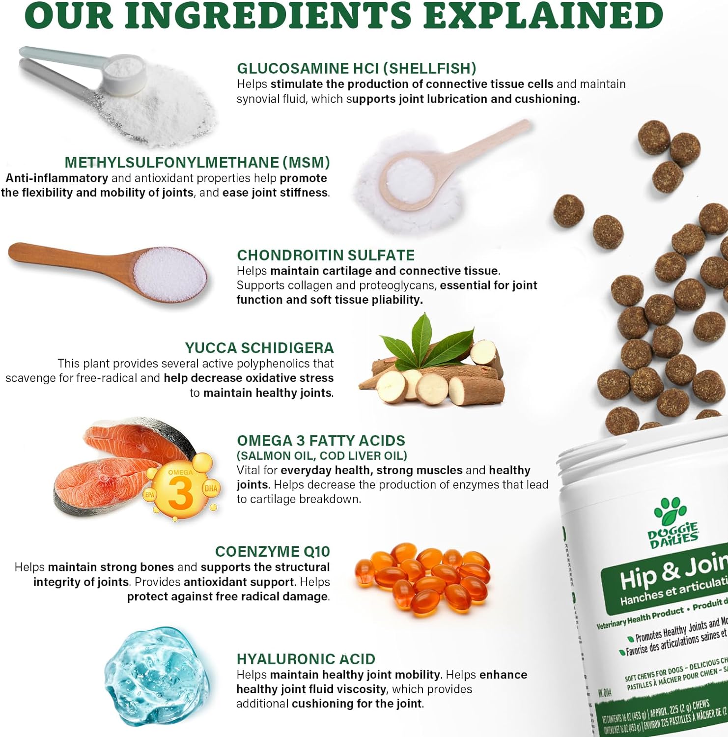 Doggie Dailies Glucosamine for Dogs – 225 Chews – Joint Supplement for Dogs of All Breeds & Sizes – Hip and Joint Supplement for Dogs – Premium Glucosamine and Chondroitin for Dogs