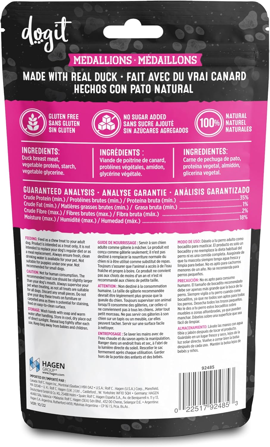 Dogit Snack Bar Duck Medallions Dog Treats – 150g for Large and Medium Dogs, Chews, Gateries Pour Chien, Os Pour Chien